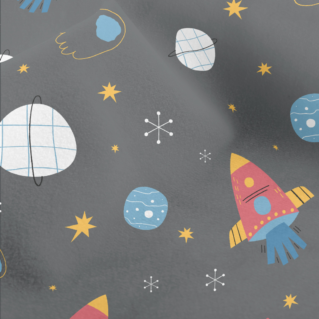 兒童手繪宇宙水晶絨(幅寬160公分)