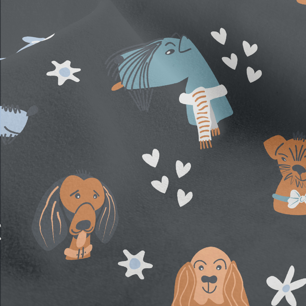 美式塗鴉狗狗水晶絨(幅寬160公分)