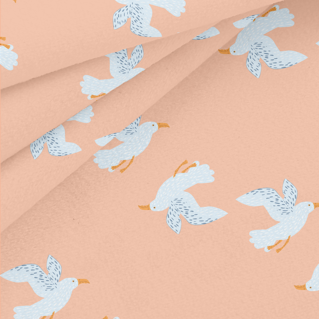 塗鴉藍色海鷗水晶絨(幅寬160公分)