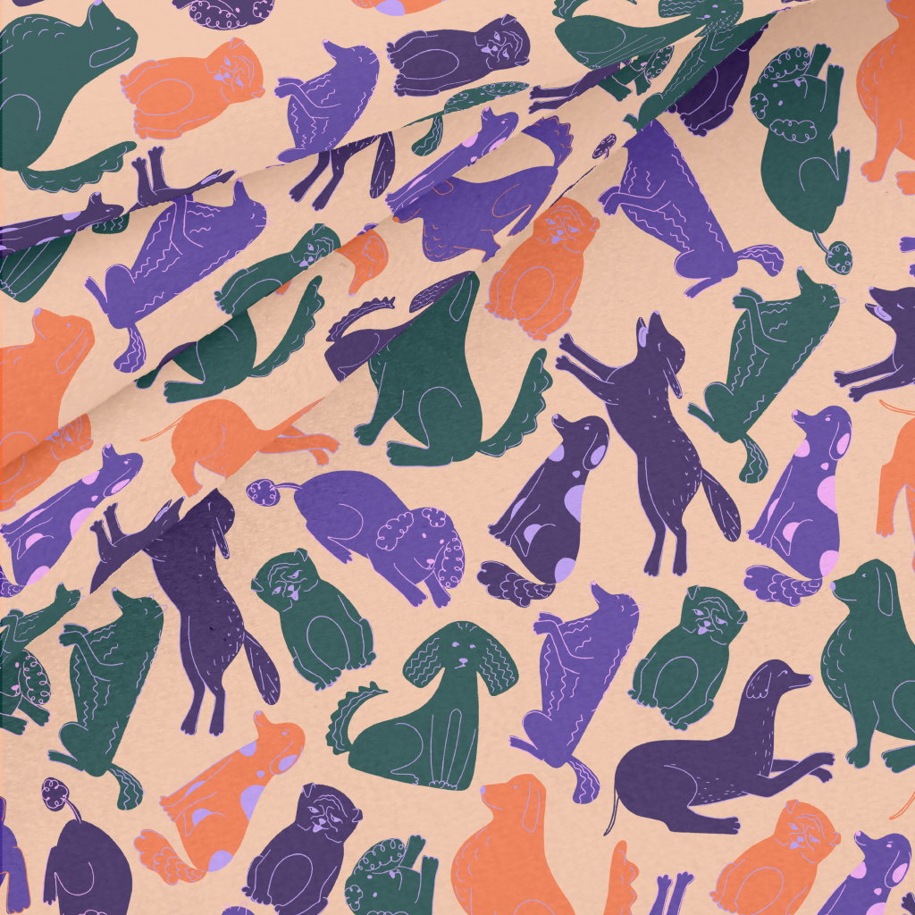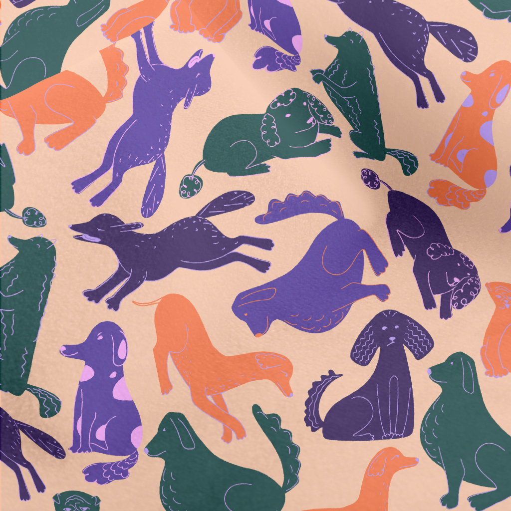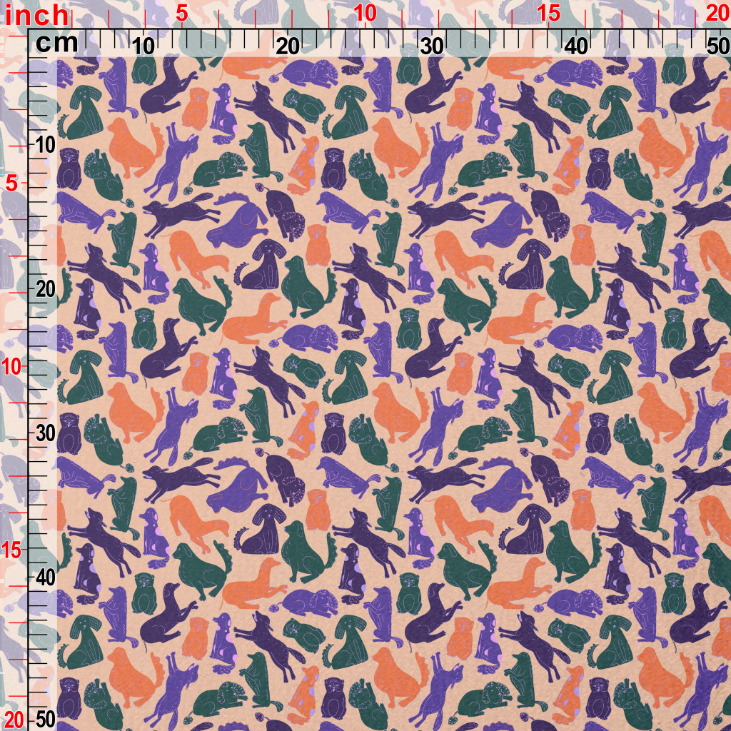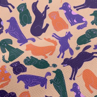 剪影線條彩色的狗狗水晶絨(幅寬160公分)