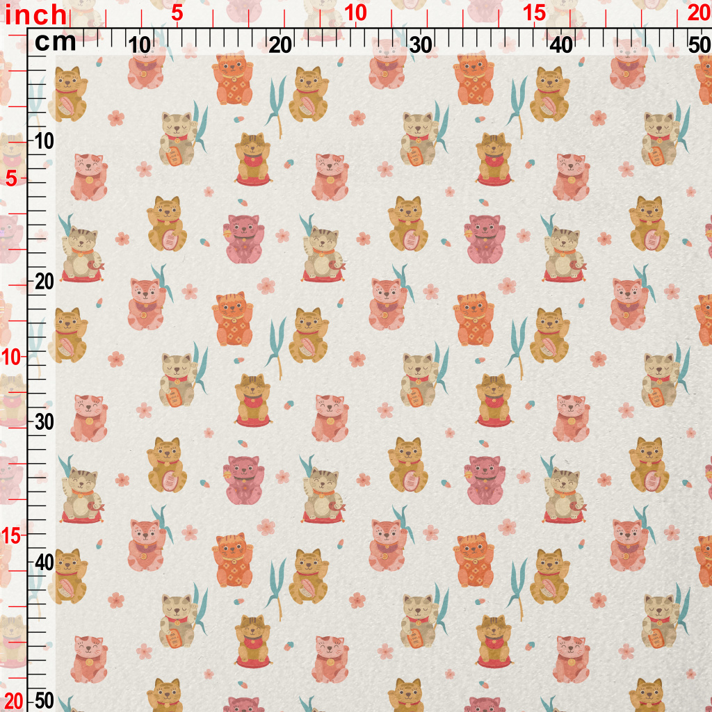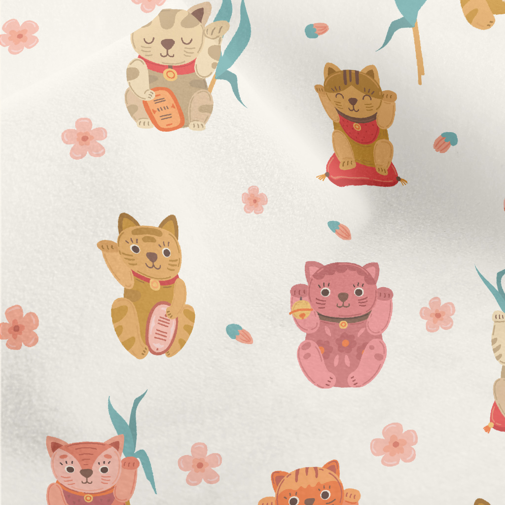 彩色可愛招財貓水晶絨(幅寬160公分)