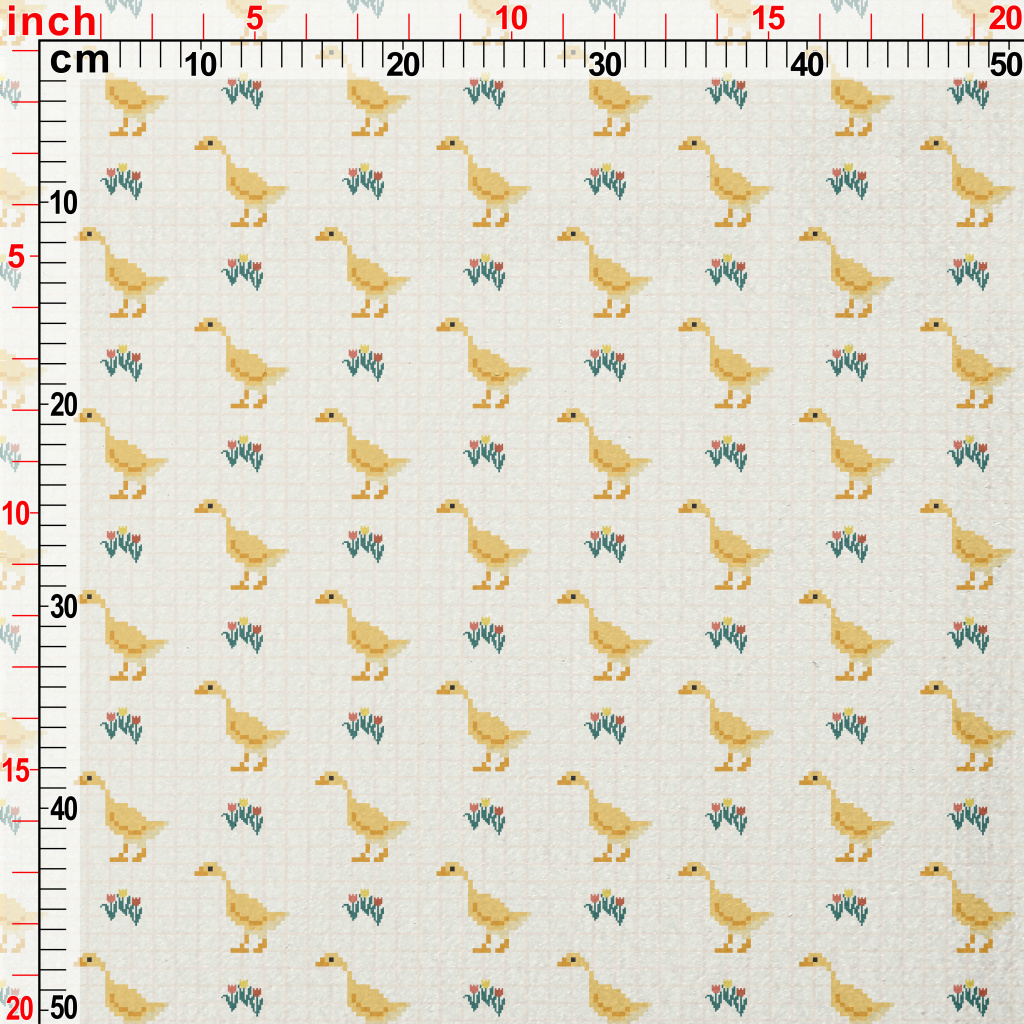 像素可愛鴨子和花朵水晶絨(幅寬160公分)
