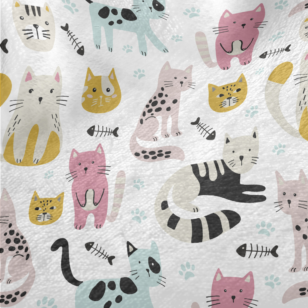 五顏六色貓咪法蘭絨(幅寬150公分)