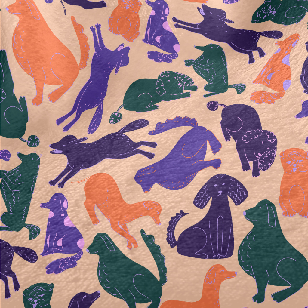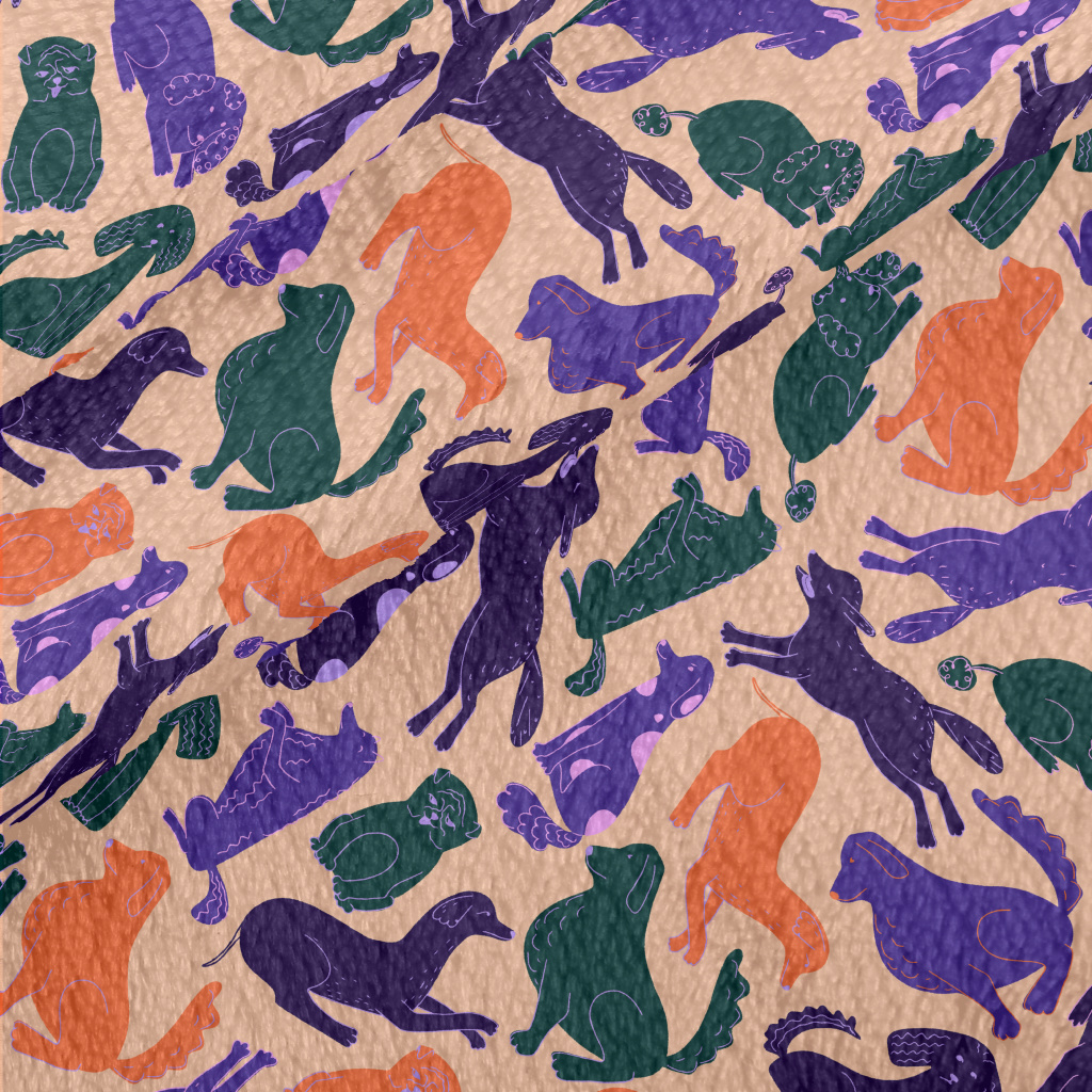 剪影線條彩色的狗狗法蘭絨(幅寬150公分)