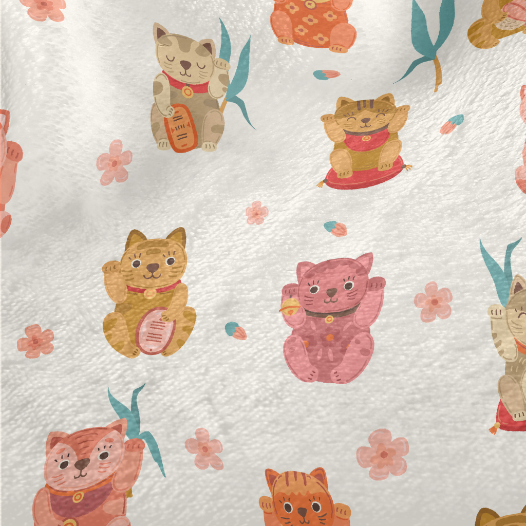 彩色可愛招財貓法蘭絨(幅寬150公分)