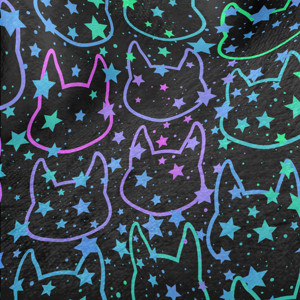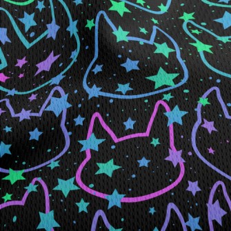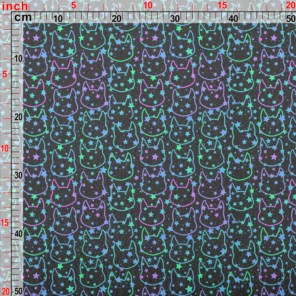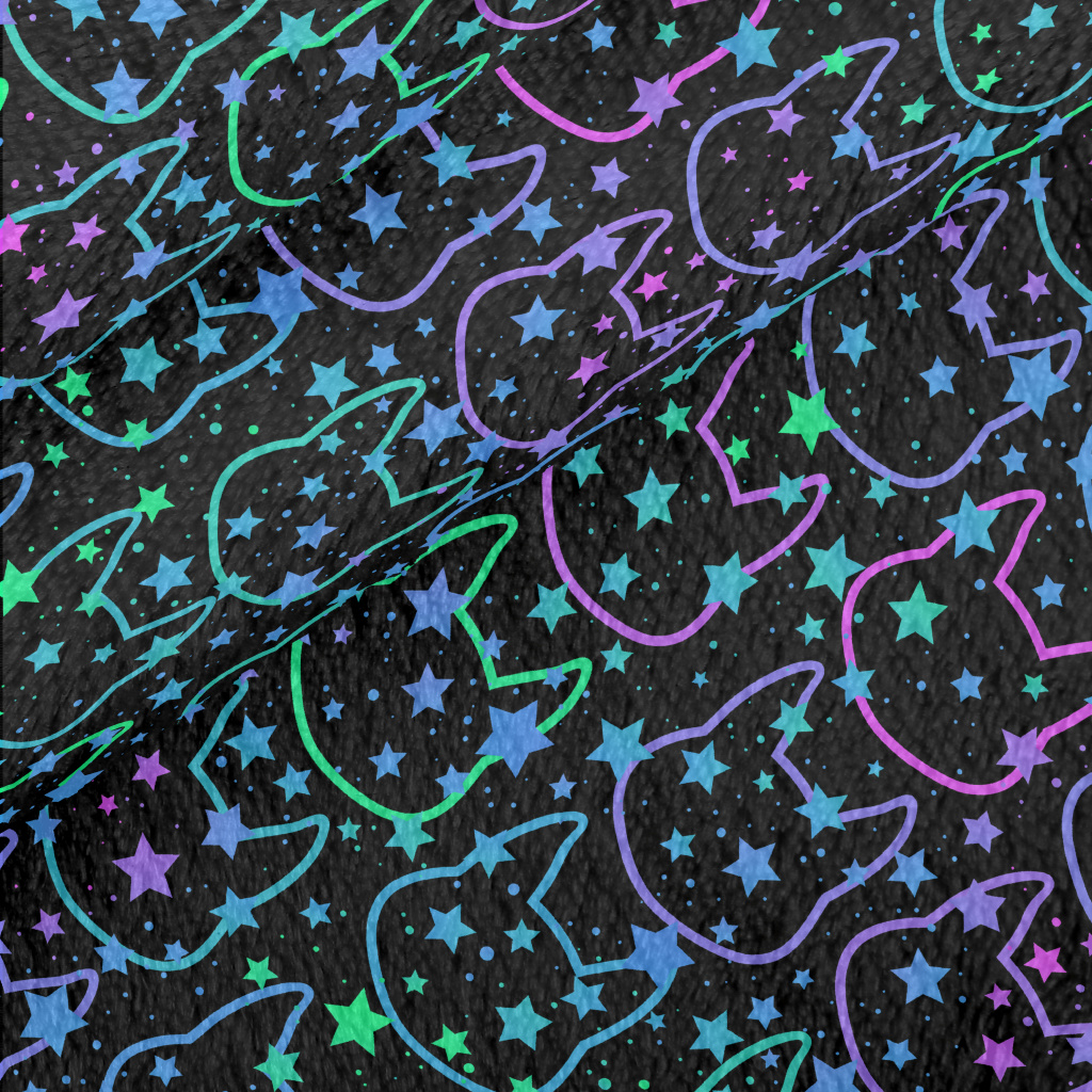 線條明亮貓咪與星星法蘭絨(幅寬150公分)