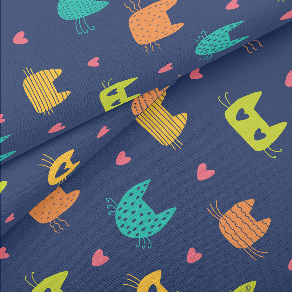 不同色塊設計貓咪羅馬布(幅寬160公分)