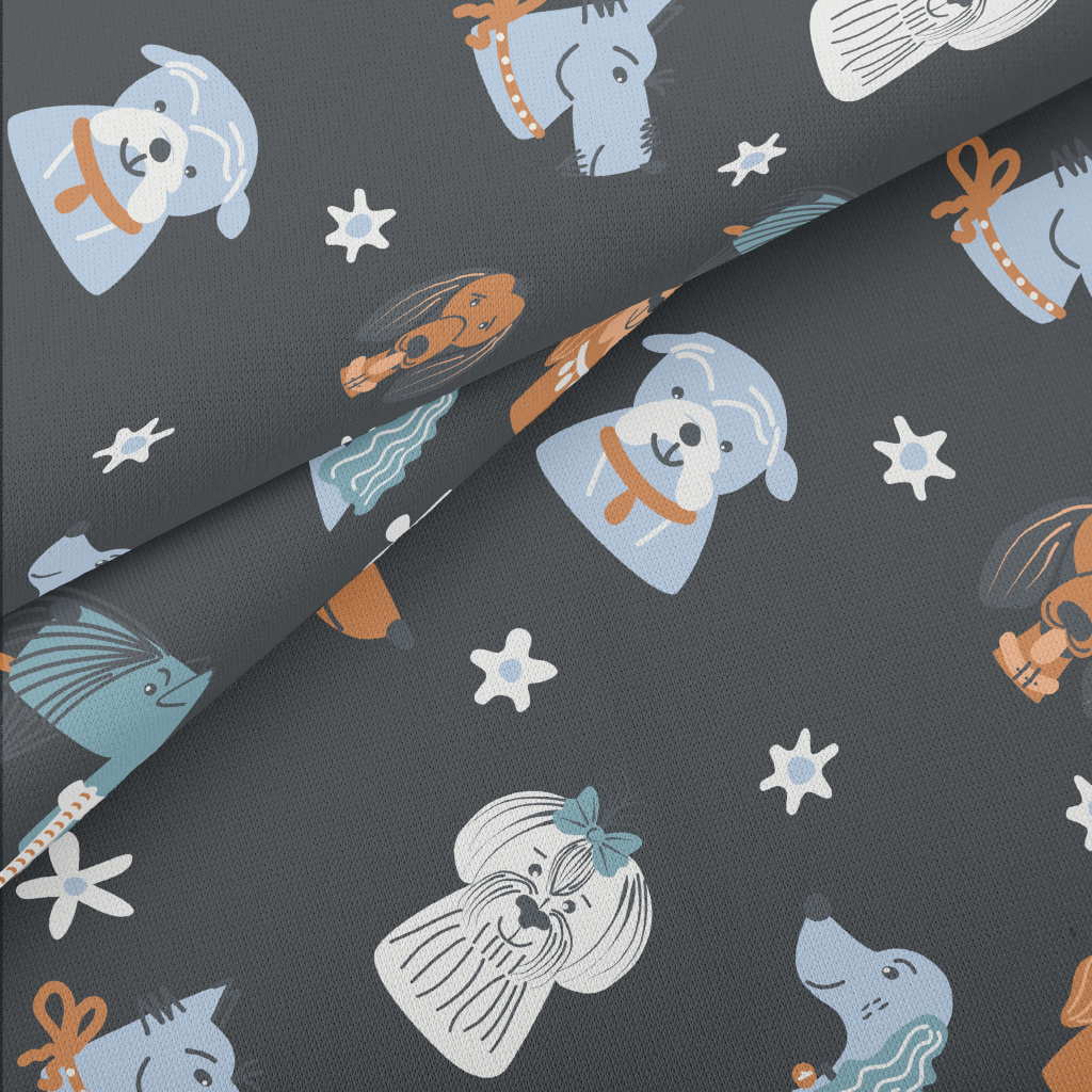 美式塗鴉狗狗羅馬布(幅寬160公分)
