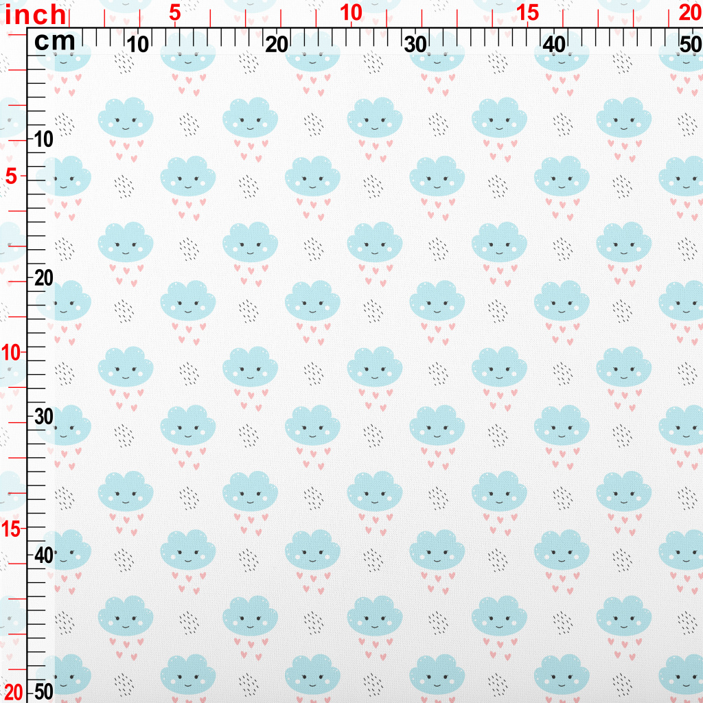 下著愛心的雲朵羅馬布(幅寬160公分)