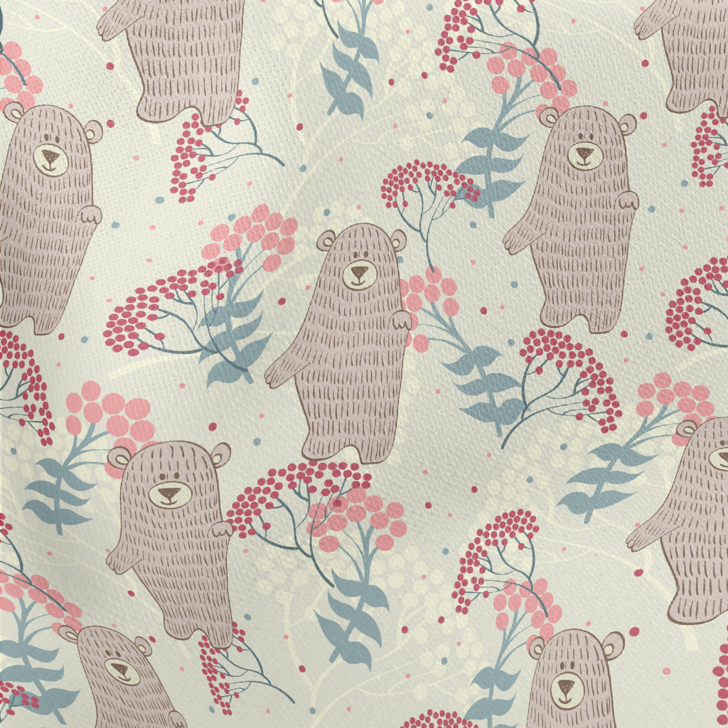 手繪小熊和花草羅馬布(幅寬160公分)
