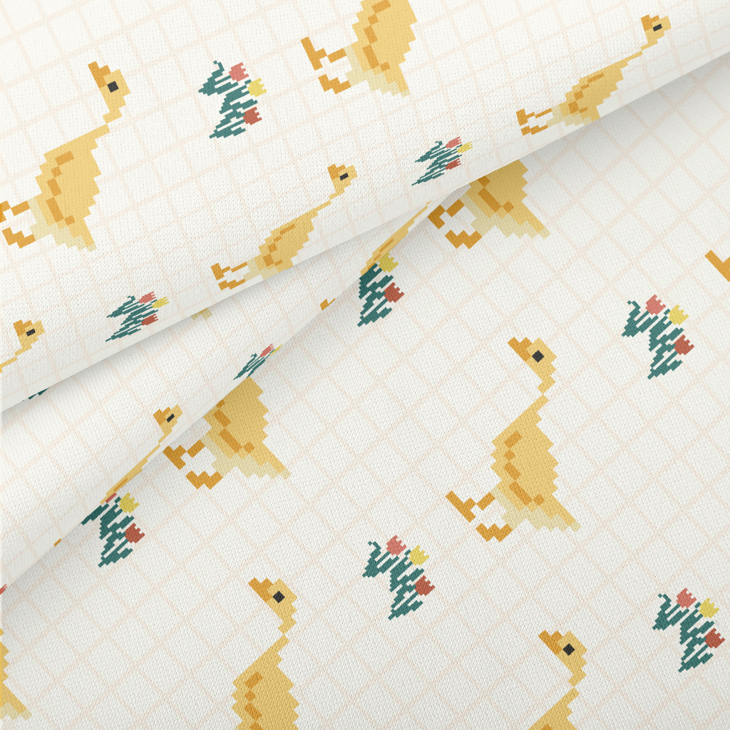 像素可愛鴨子和花朵羅馬布(幅寬160公分)