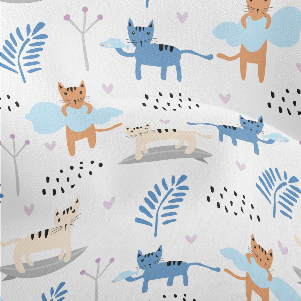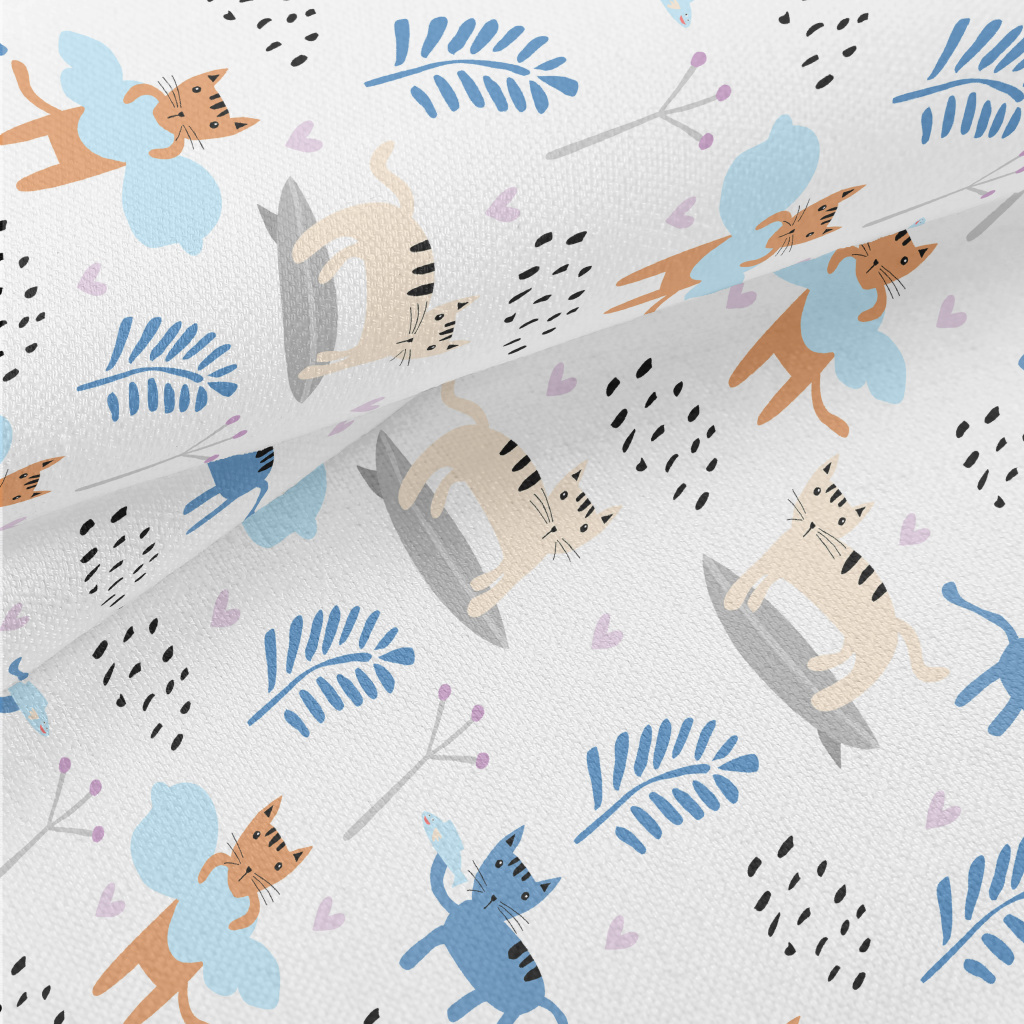 色塊卡通貓咪竹節麻(幅寬150公分)