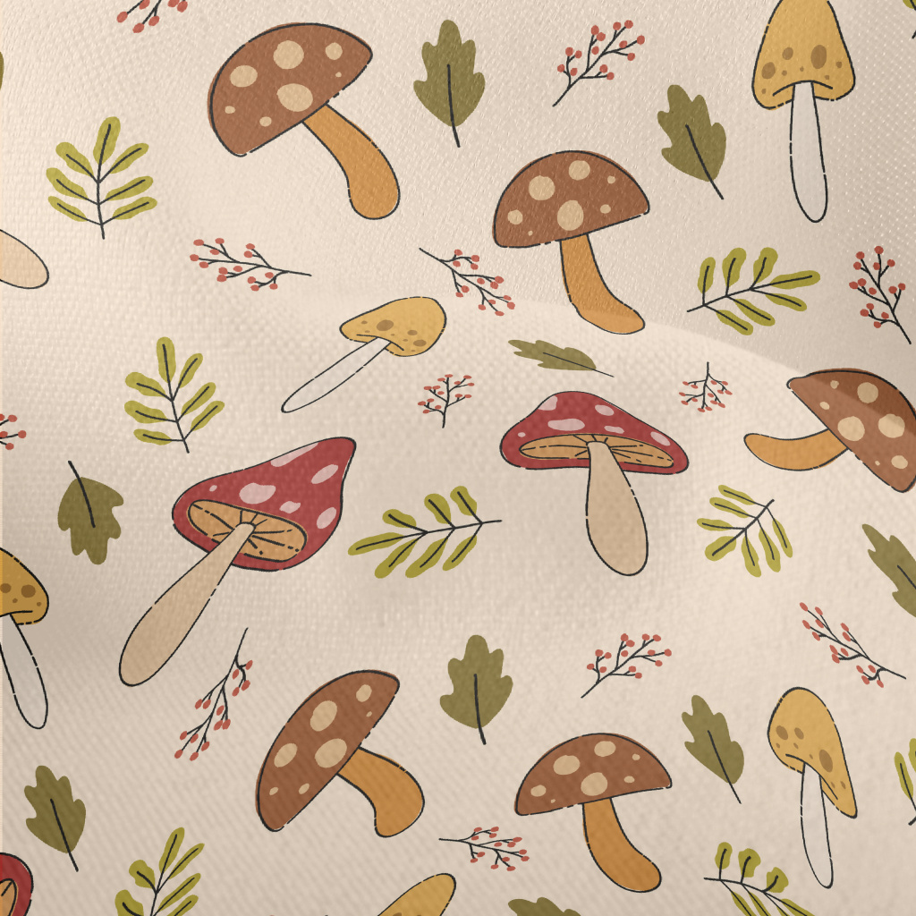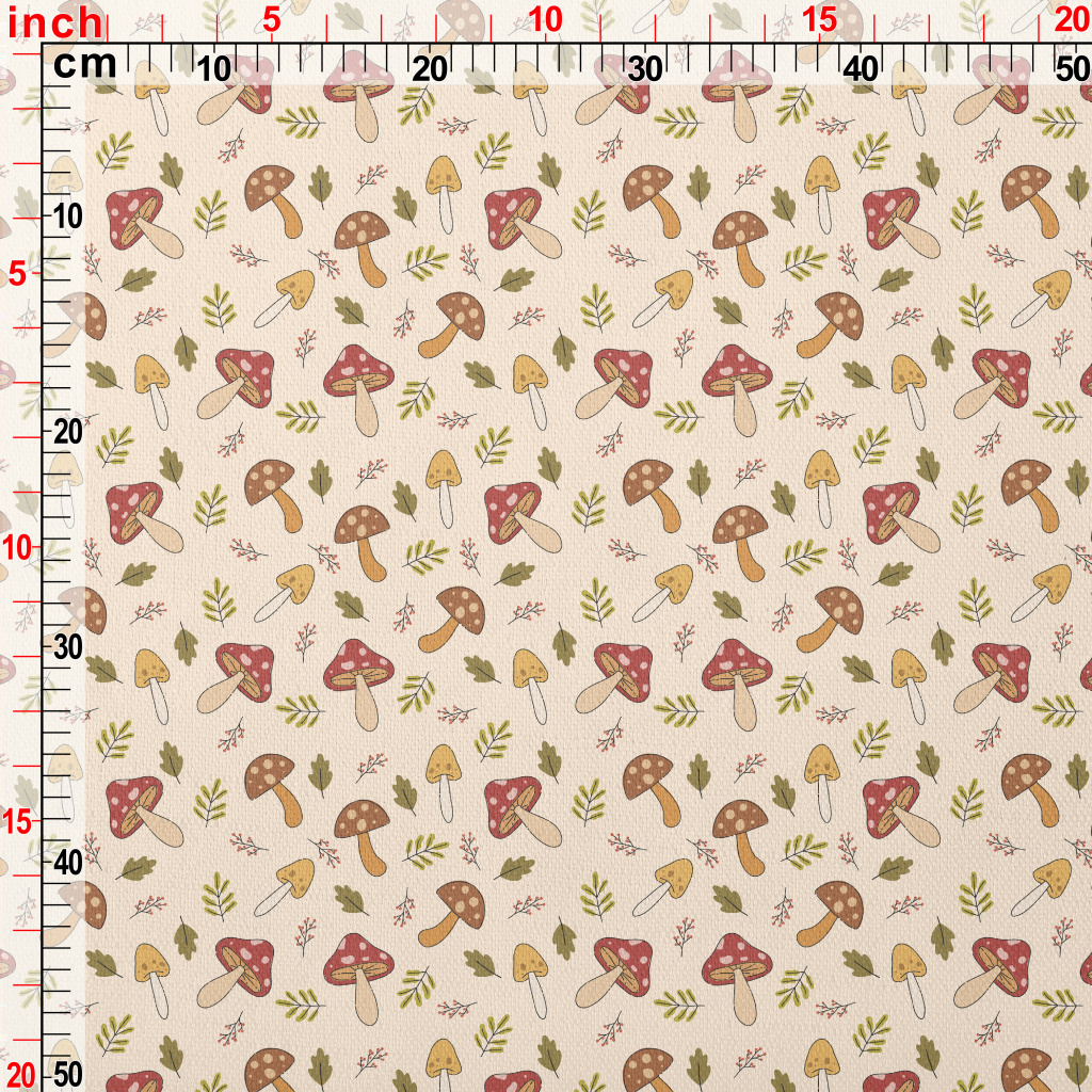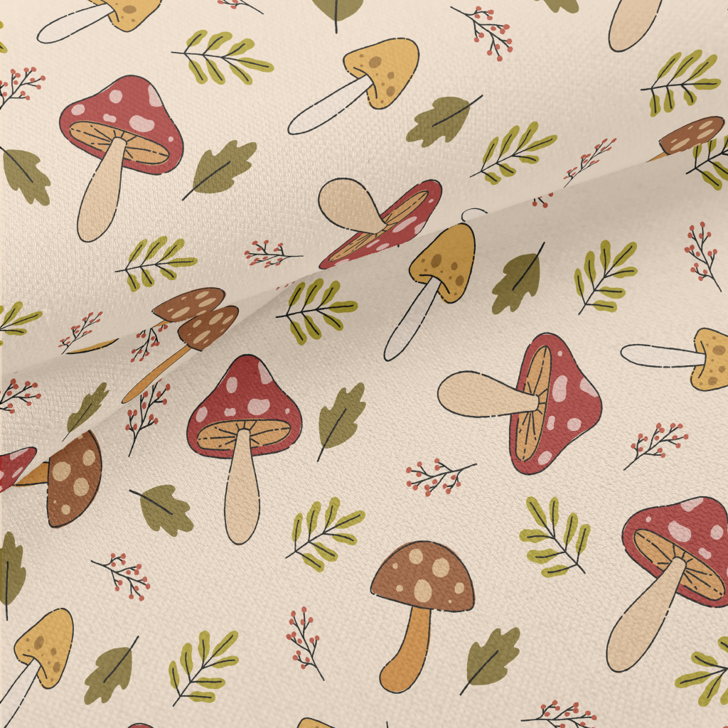 卡通手繪蘑菇竹節麻(幅寬150公分)