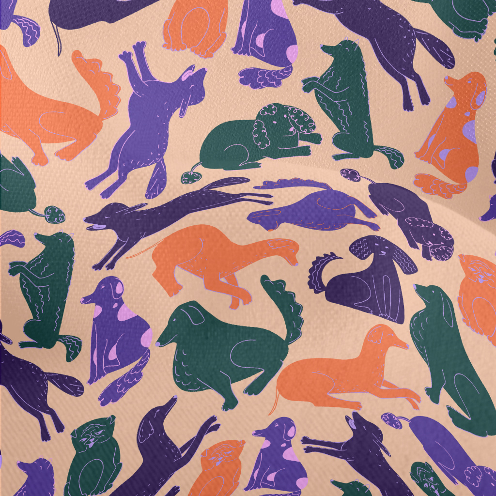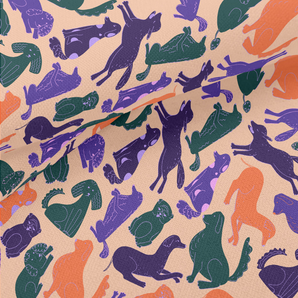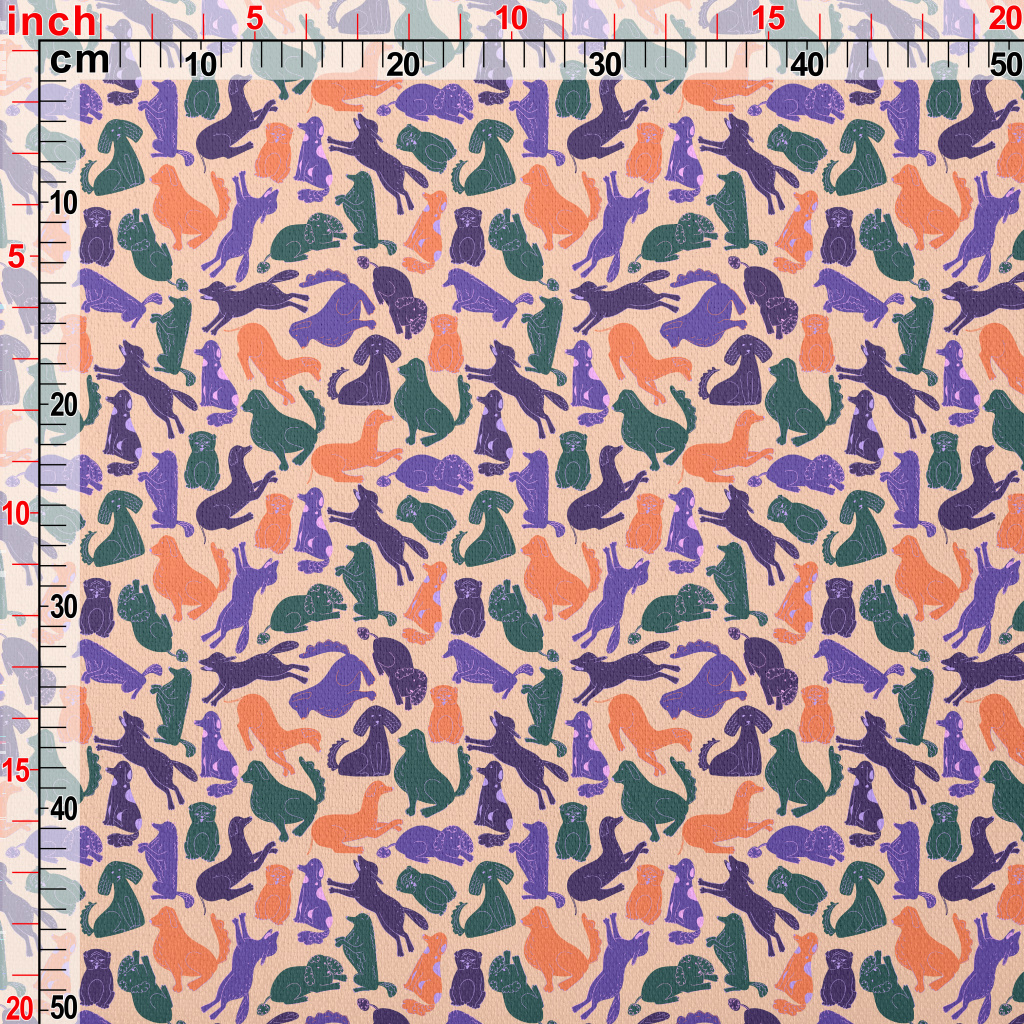 剪影線條彩色的狗狗竹節麻(幅寬150公分)