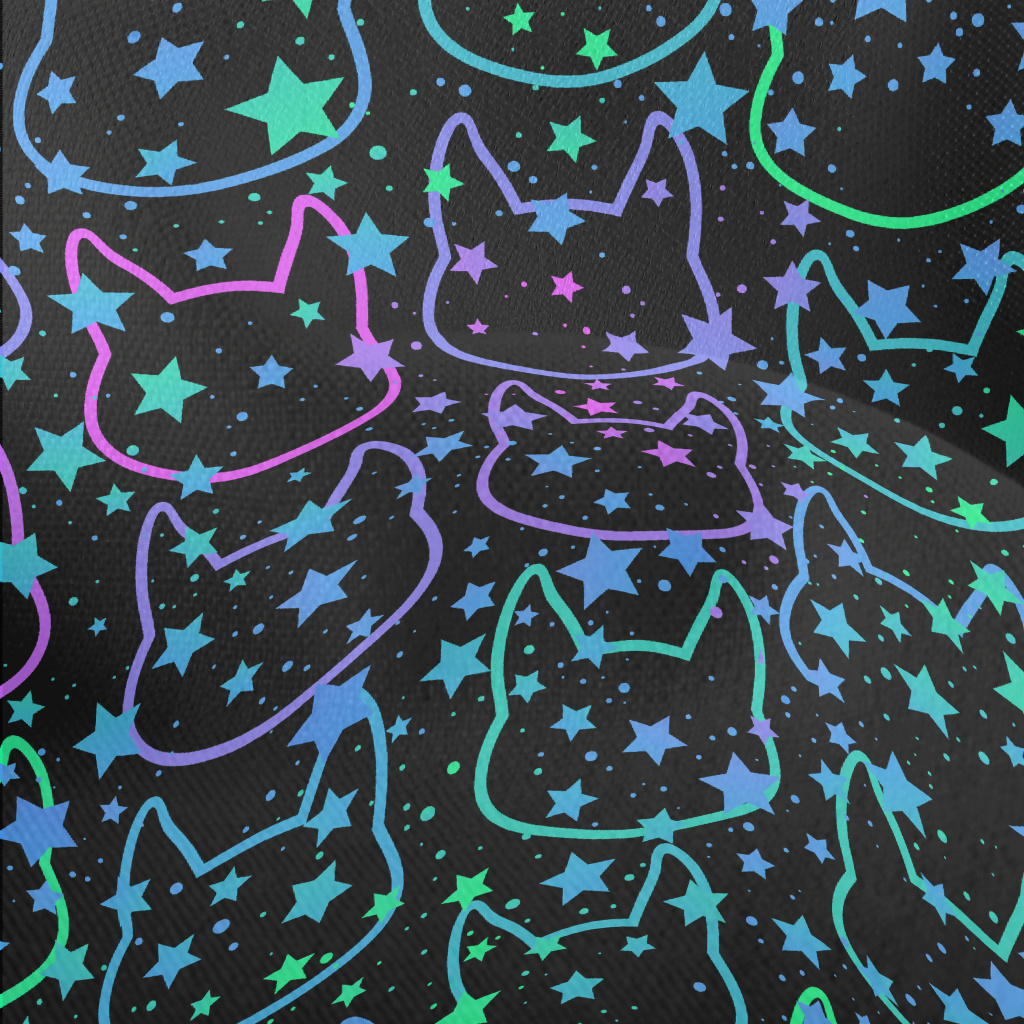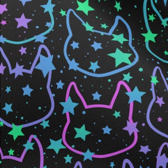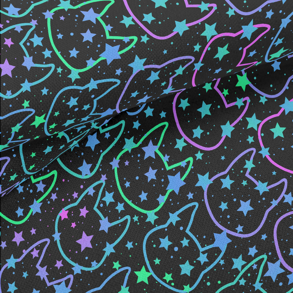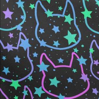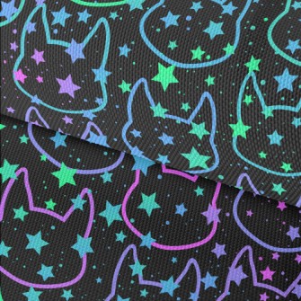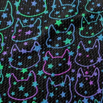 線條明亮貓咪與星星竹節麻(幅寬150公分)