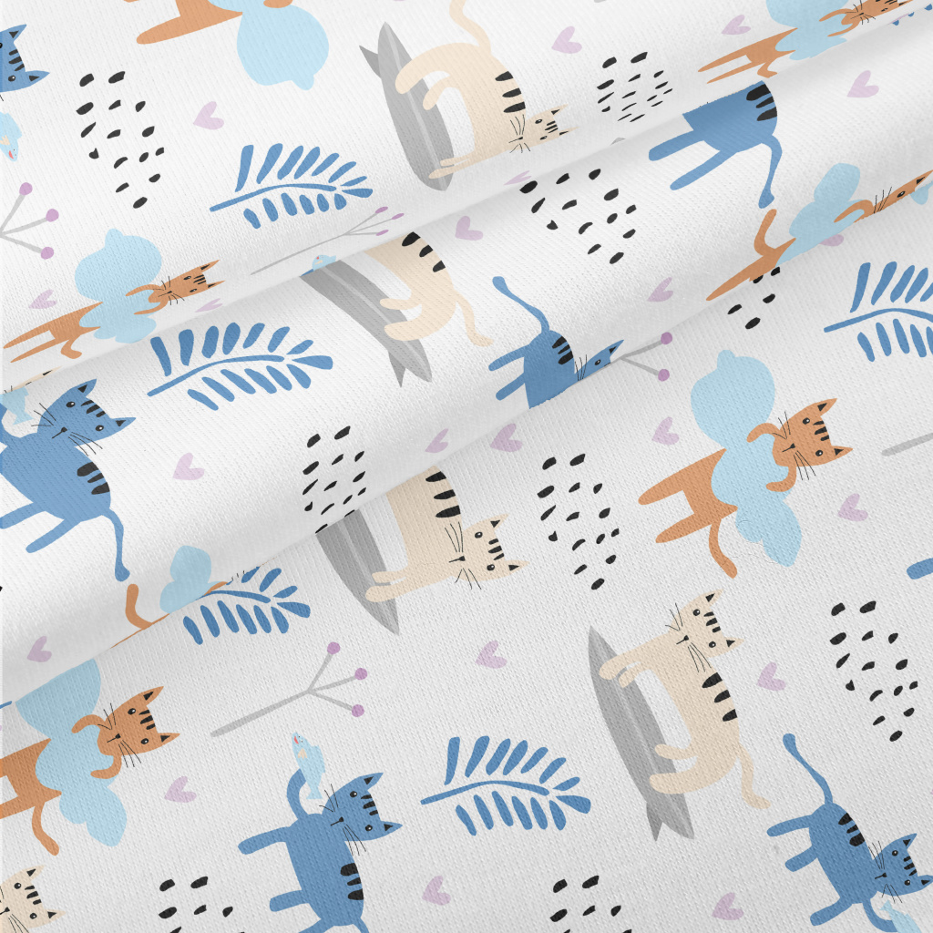 色塊卡通貓咪仿棉布(幅寬150公分)
