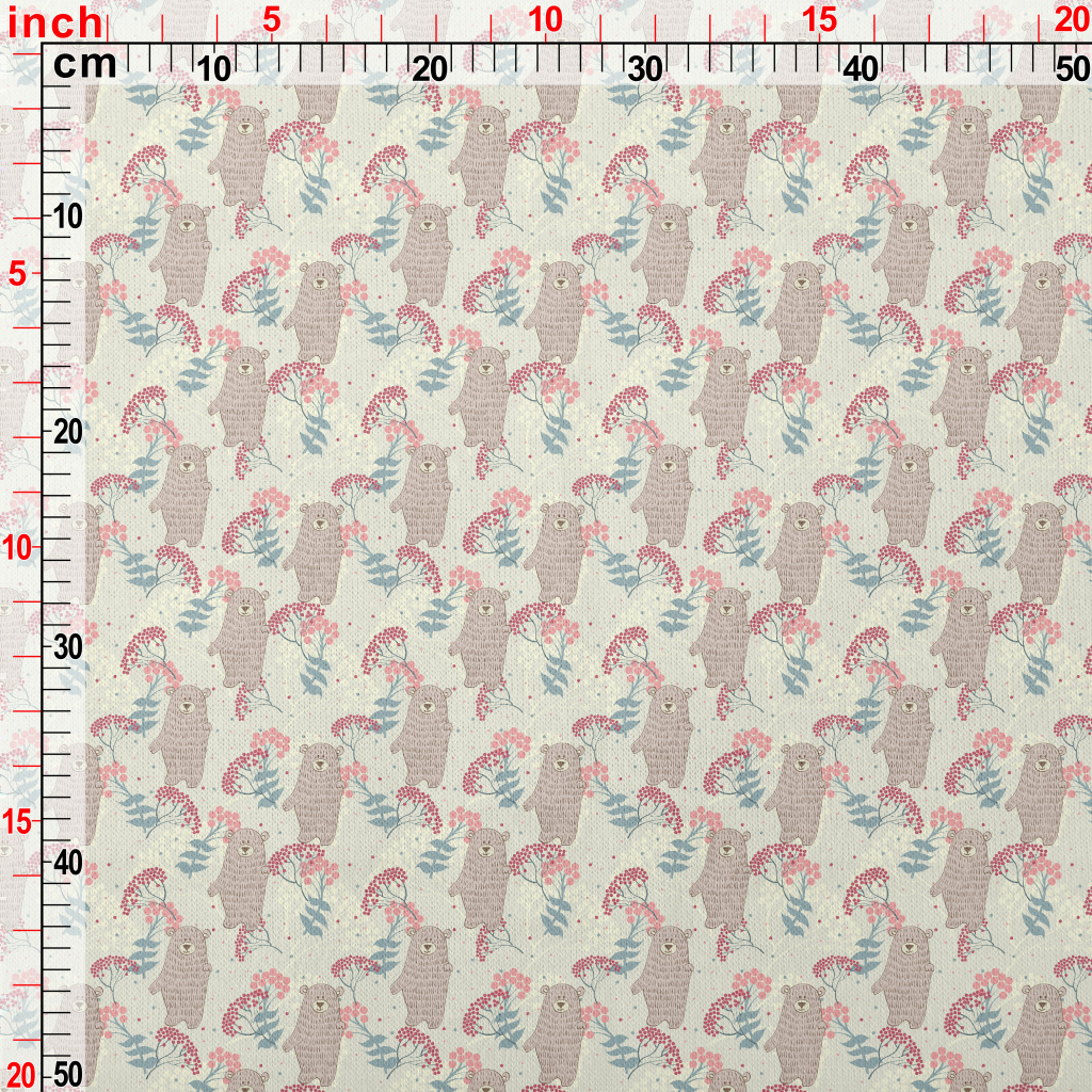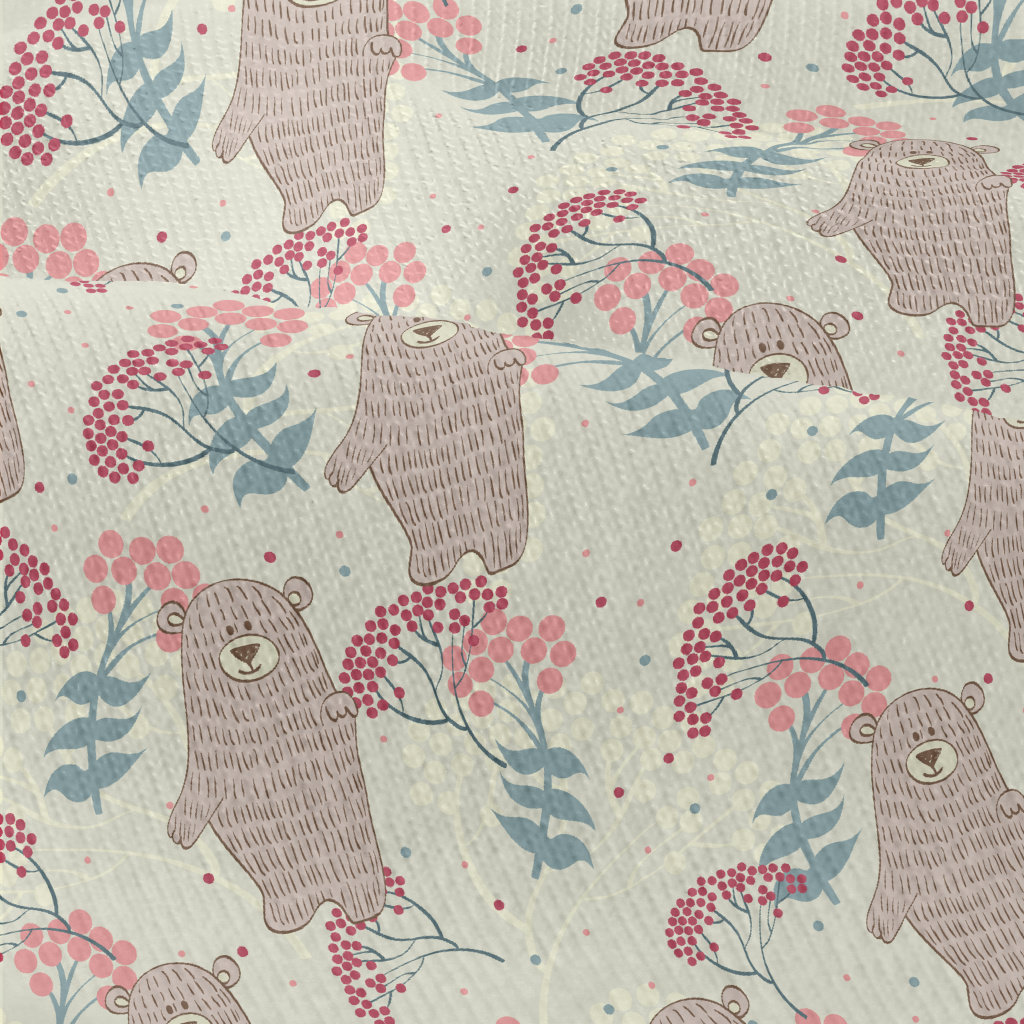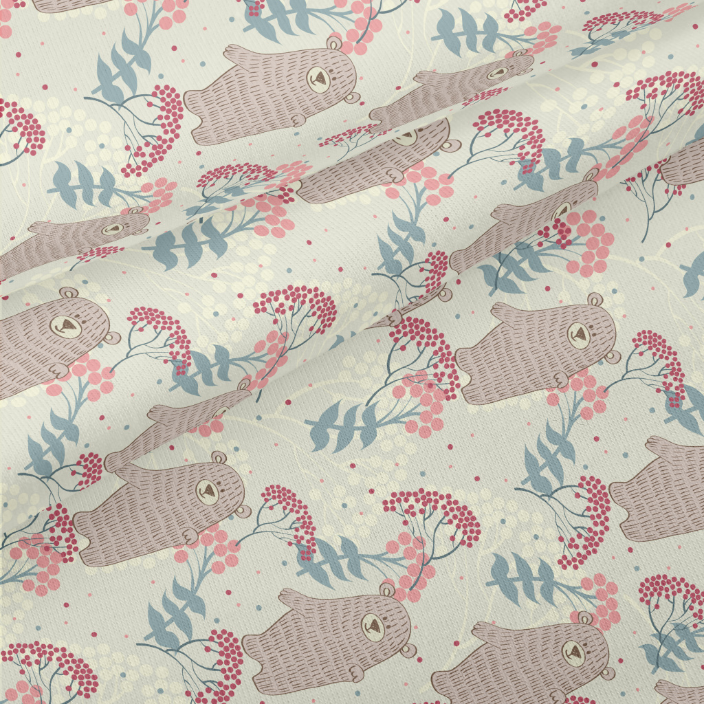 手繪小熊和花草仿棉布(幅寬150公分)