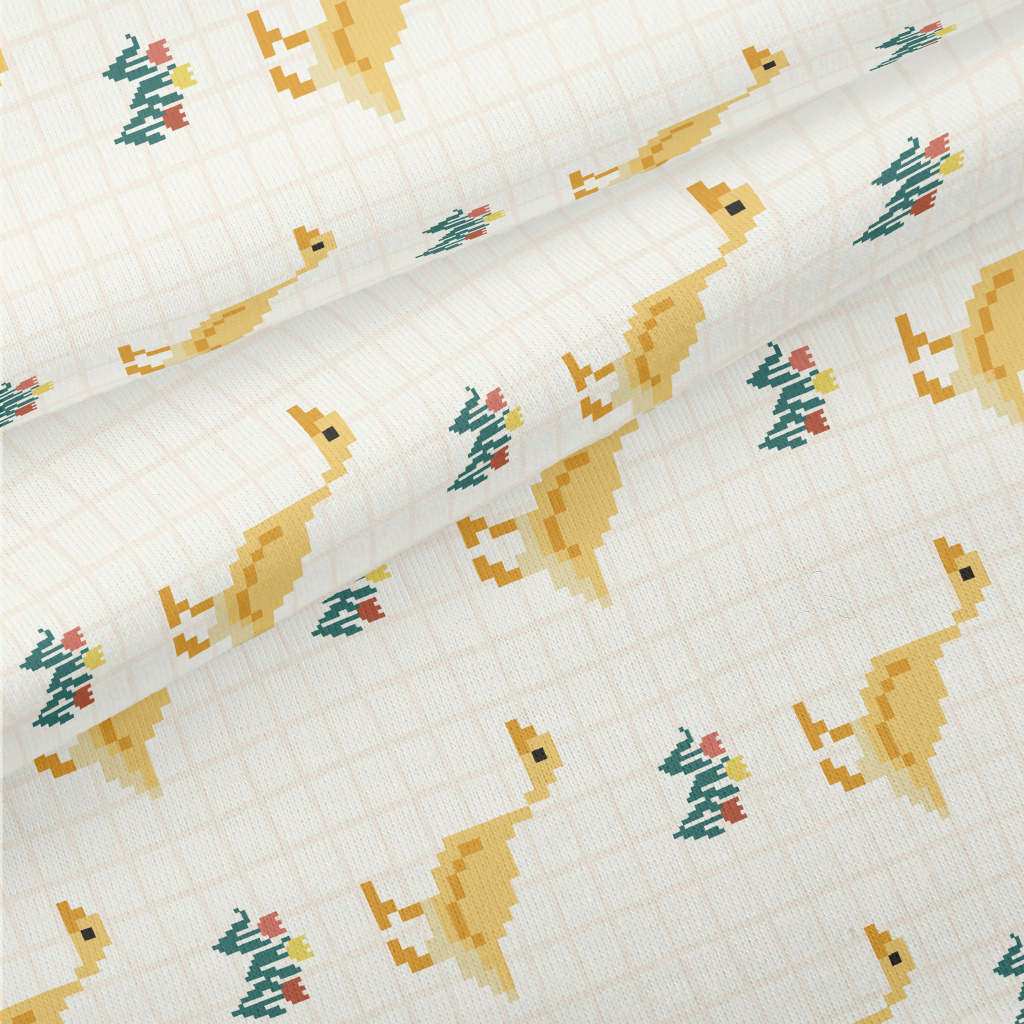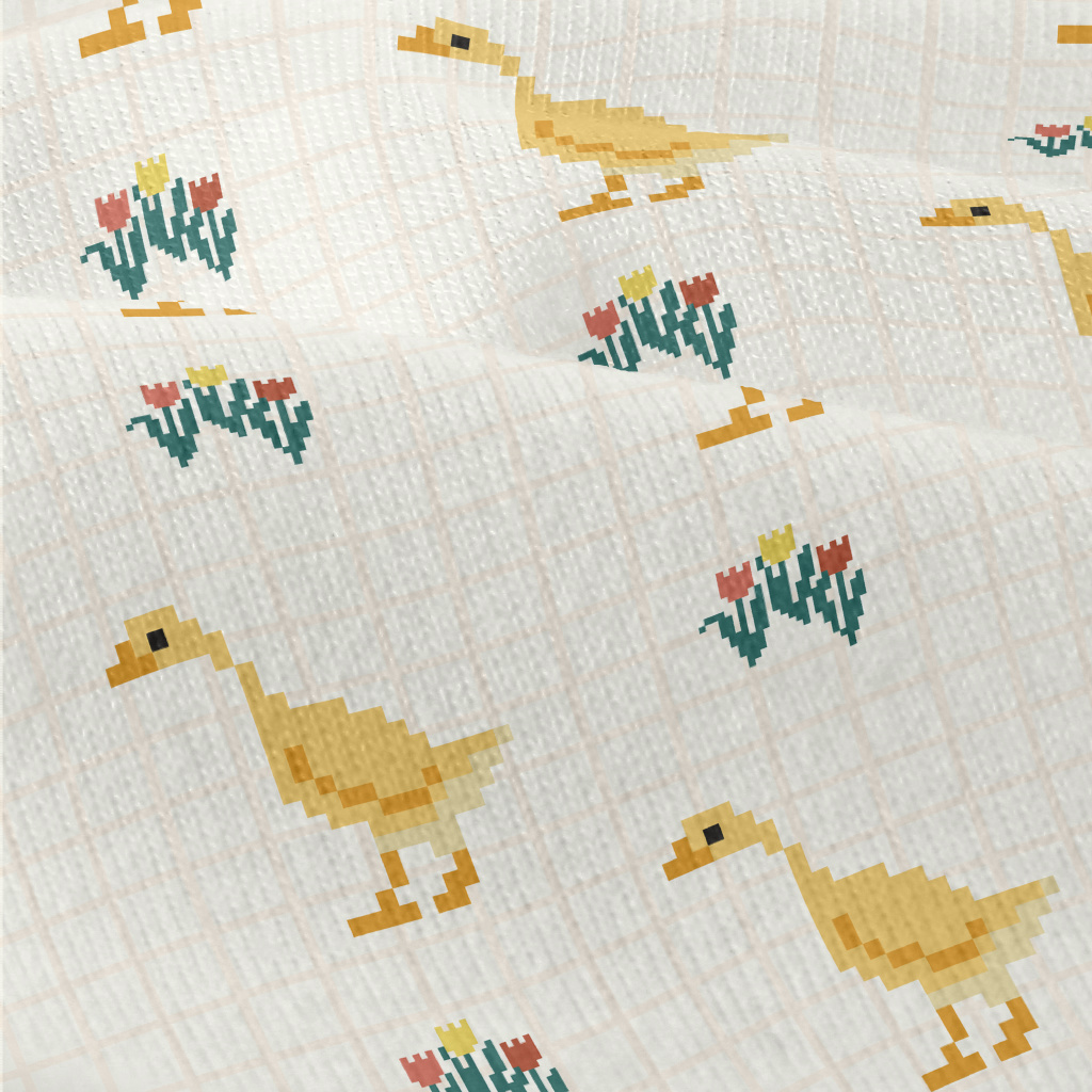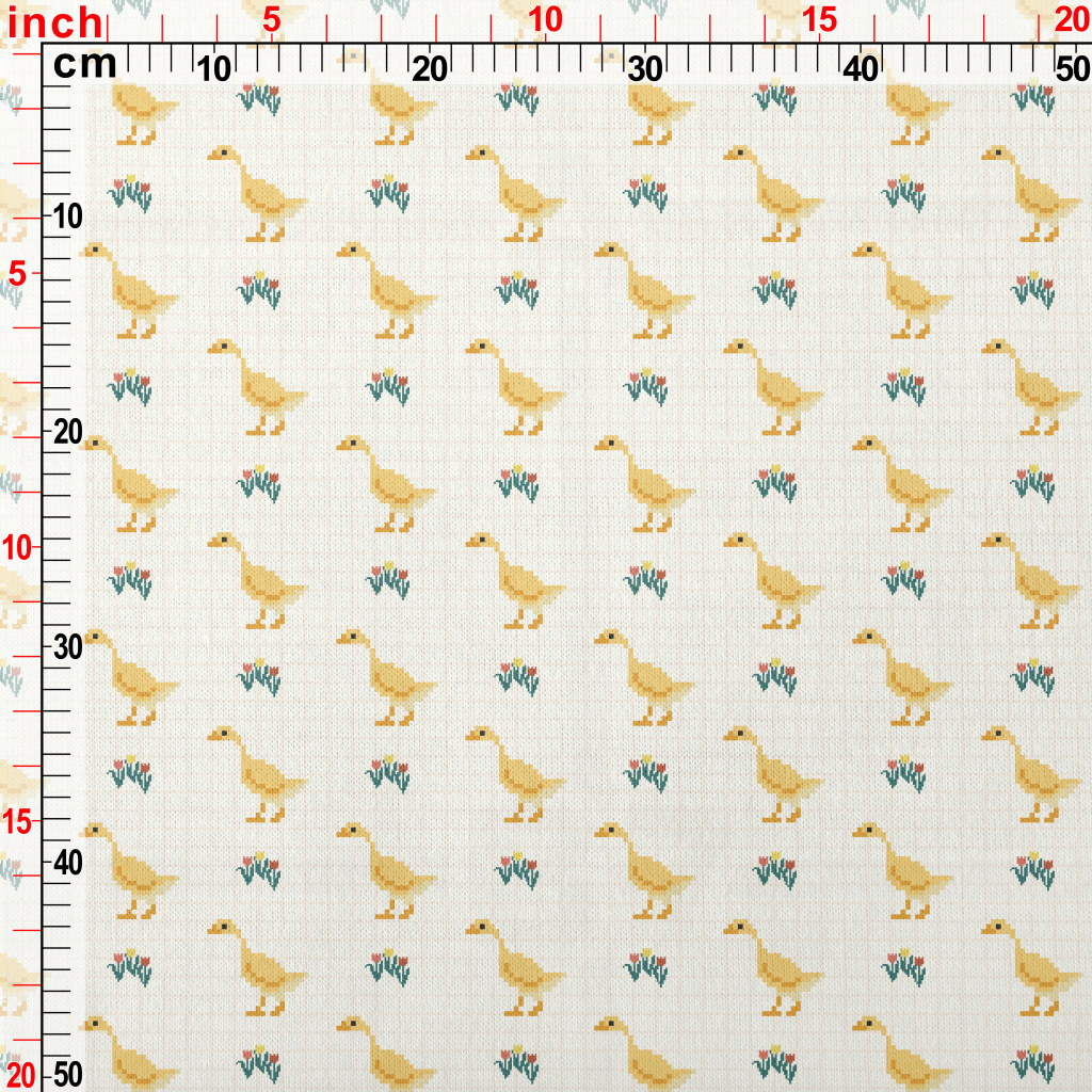 像素可愛鴨子和花朵仿棉布(幅寬150公分)