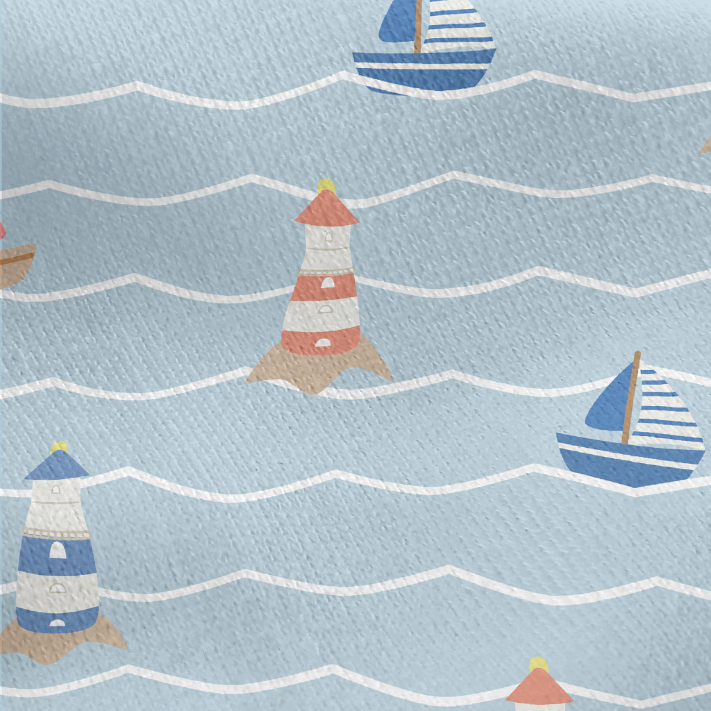紅藍色帆船與燈塔刷毛布(幅寬150公分)