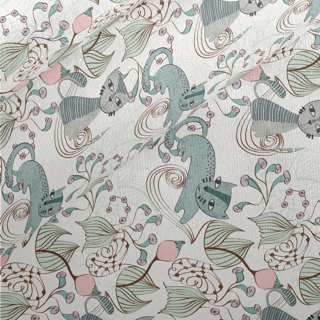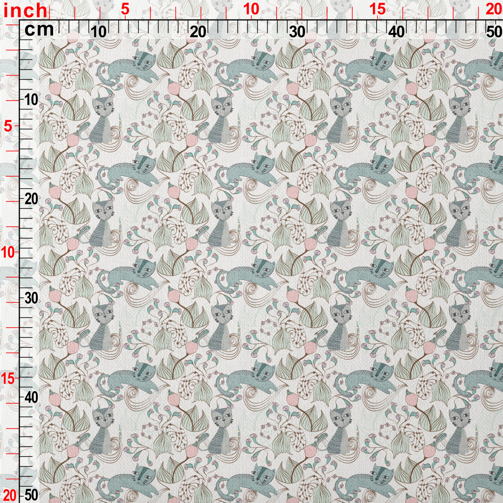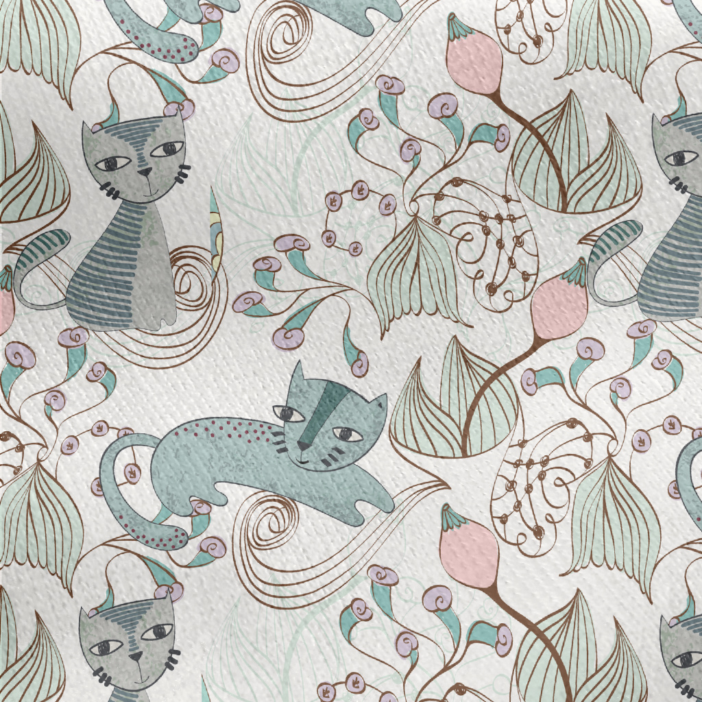 手繪質感貓咪花朵刷毛布(幅寬150公分)