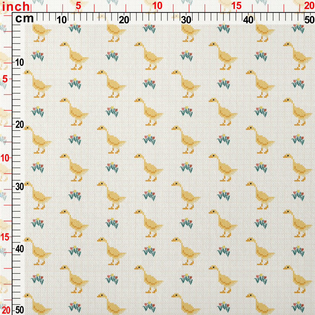 像素可愛鴨子和花朵刷毛布(幅寬150公分)