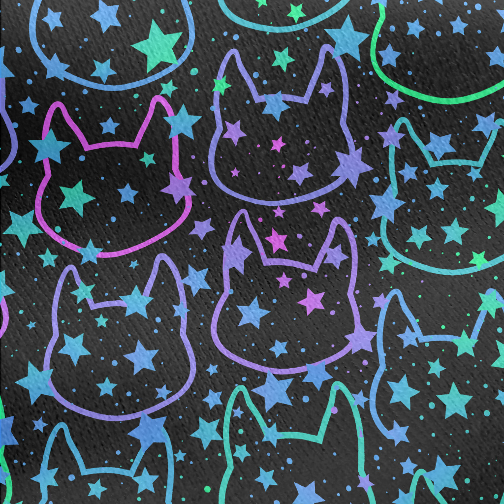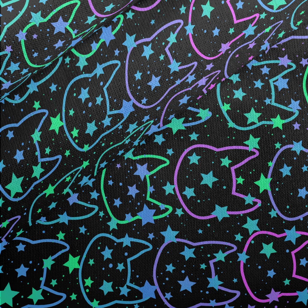 線條明亮貓咪與星星刷毛布(幅寬150公分)