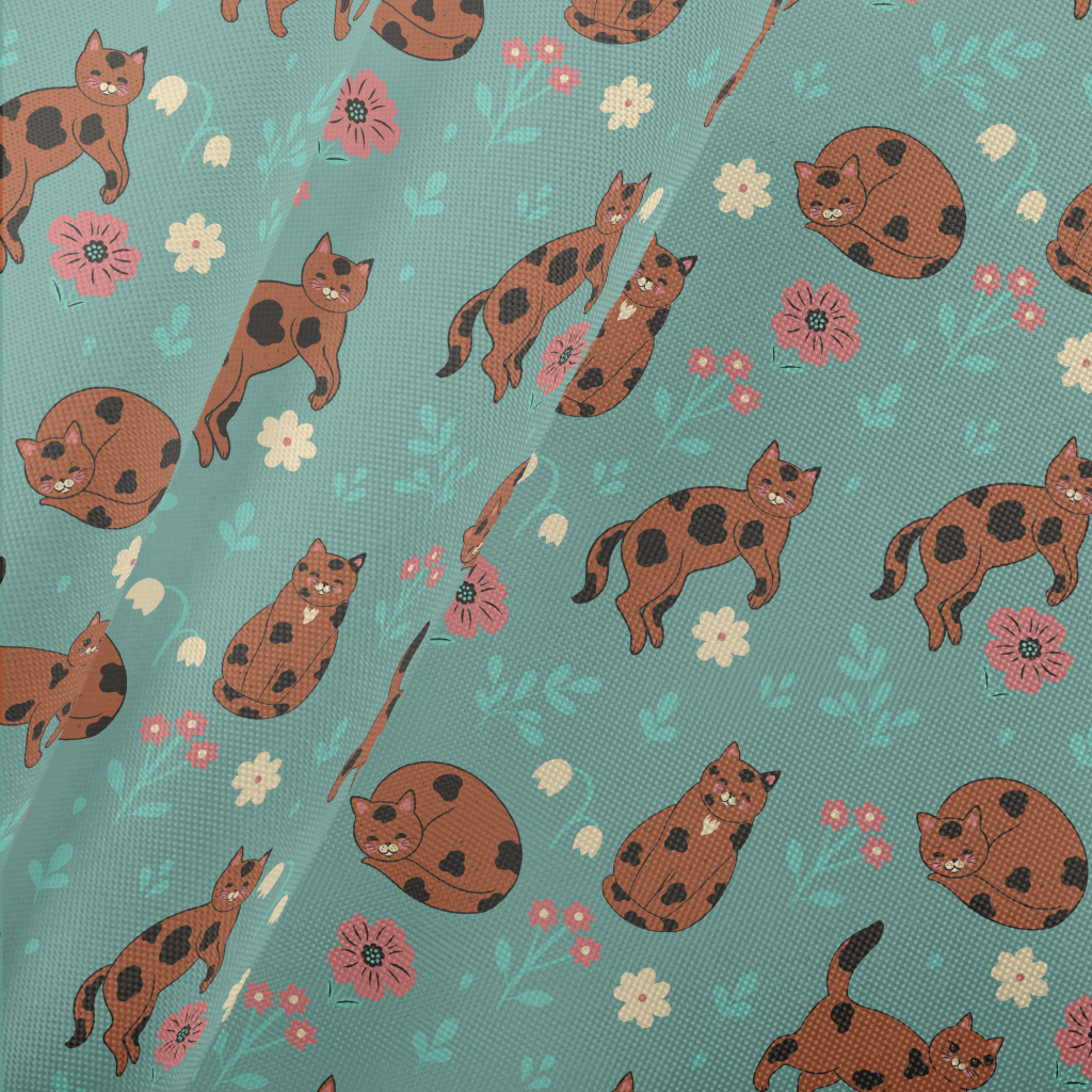 咖啡色花紋貓咪春亞紡(幅寬160公分)