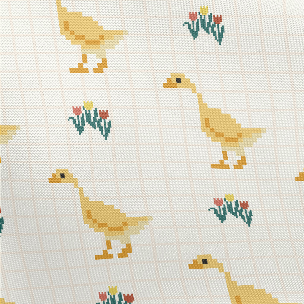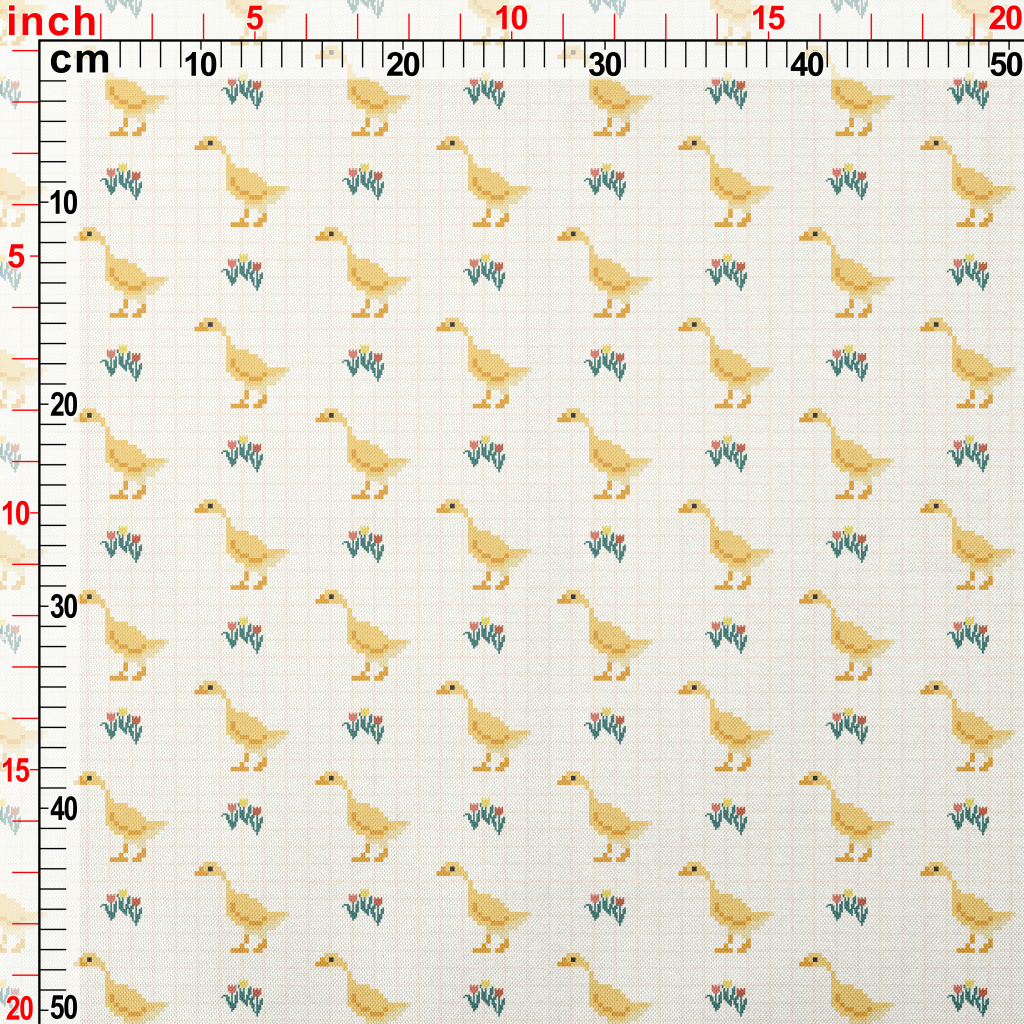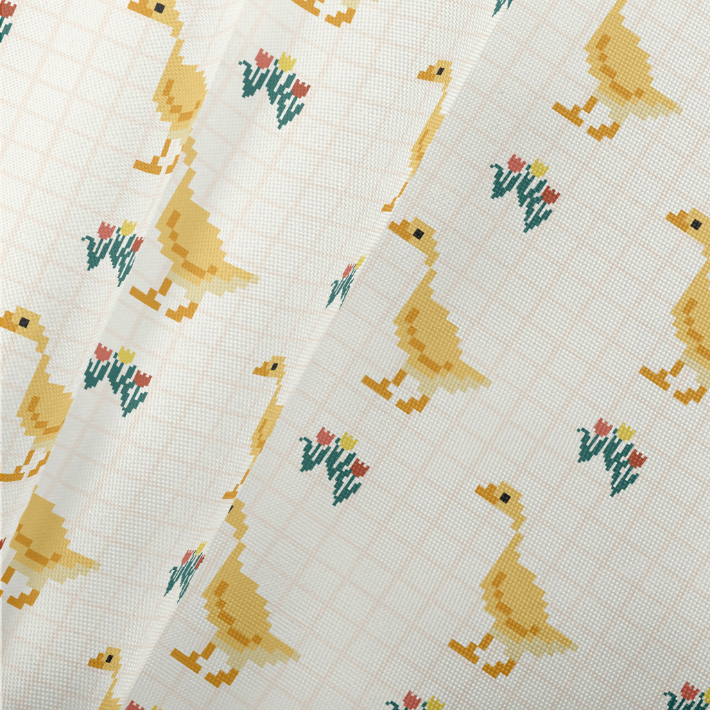 像素可愛鴨子和花朵春亞紡(幅寬160公分)