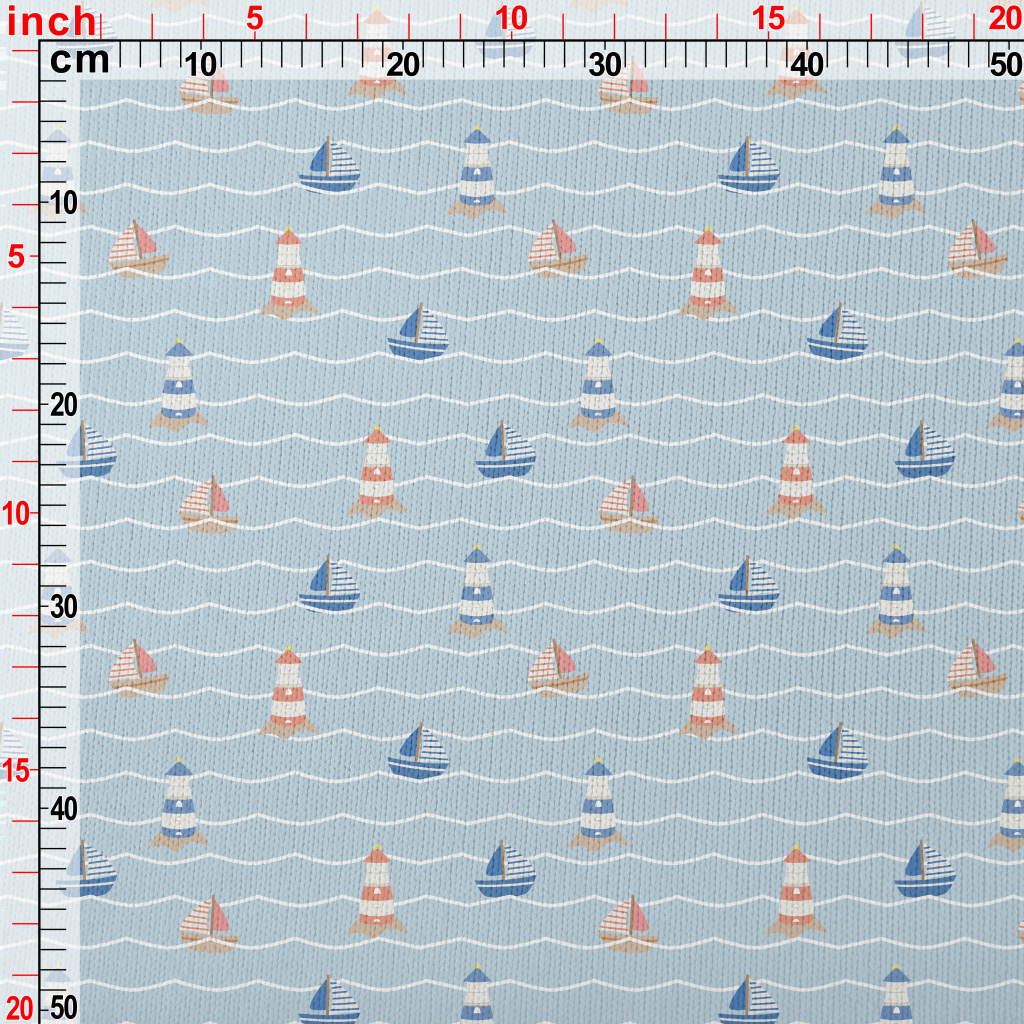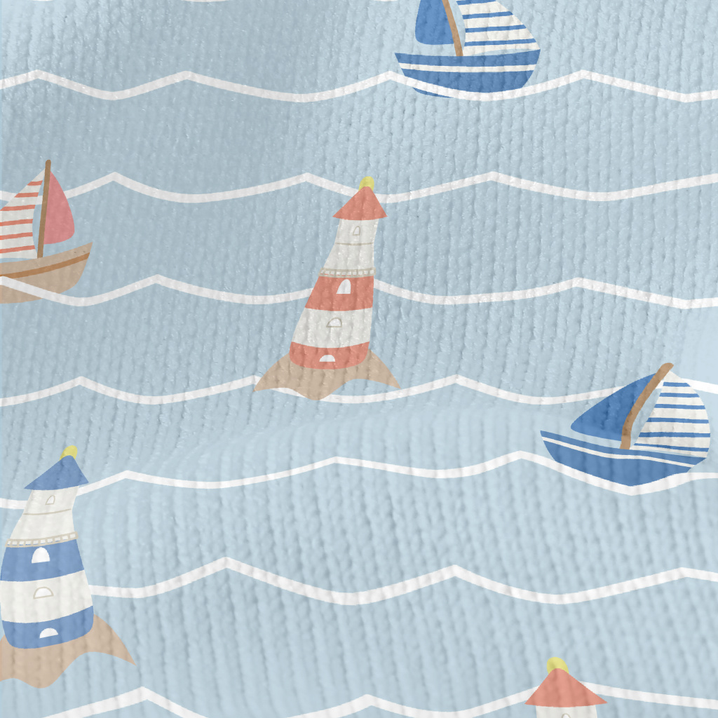 紅藍色帆船與燈塔仿毛衣布(幅寬150公分)