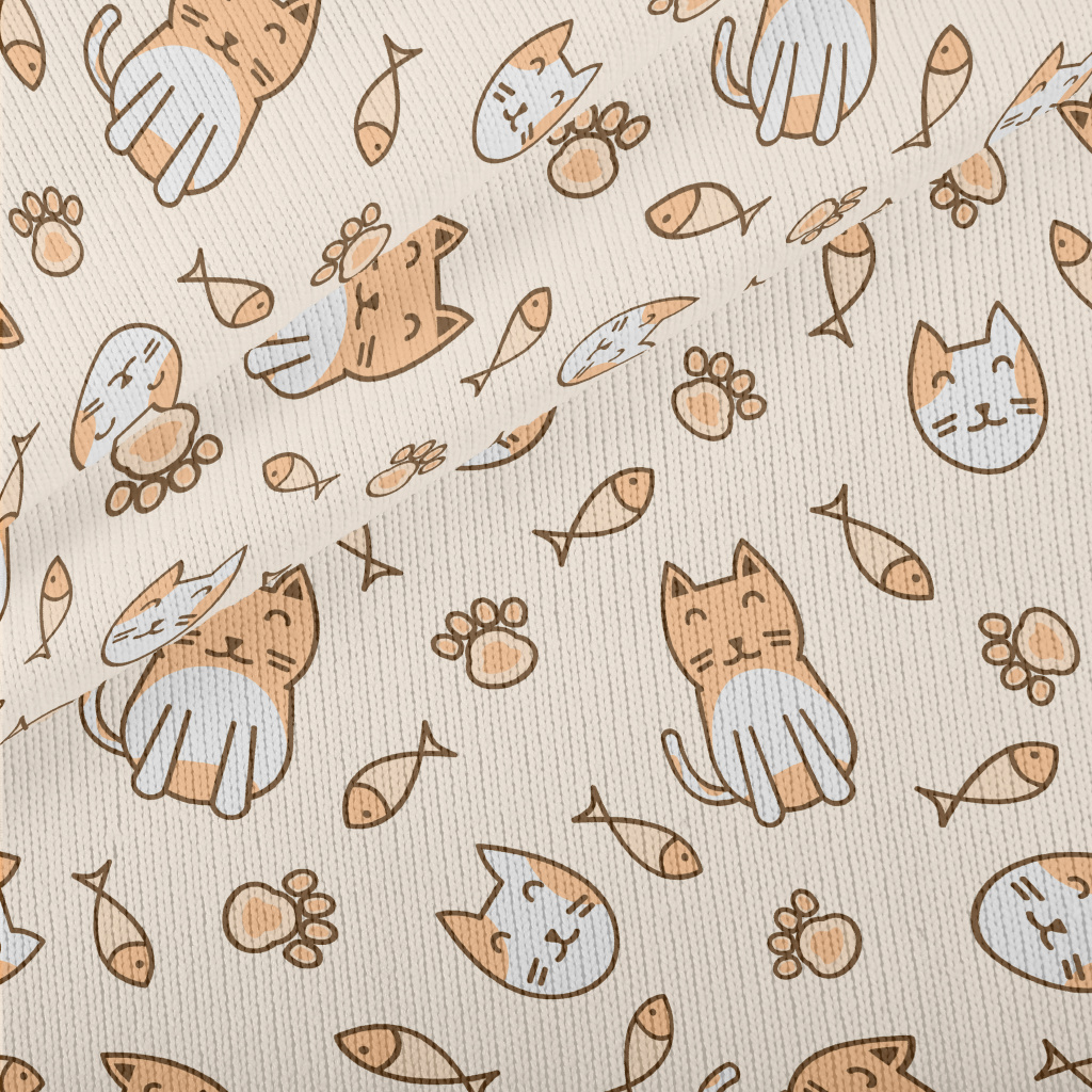端坐圓滾貓咪仿毛衣布(幅寬150公分)