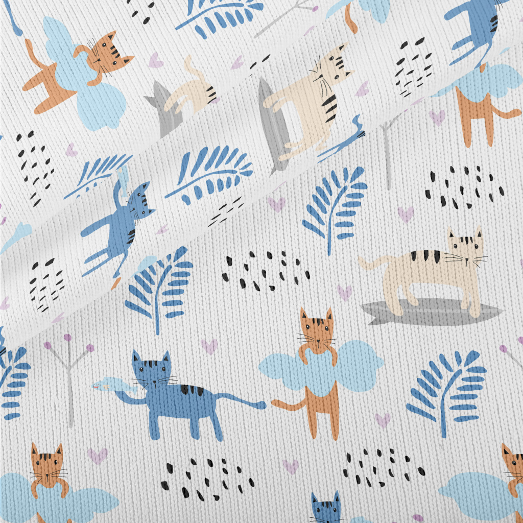 色塊卡通貓咪仿毛衣布(幅寬150公分)