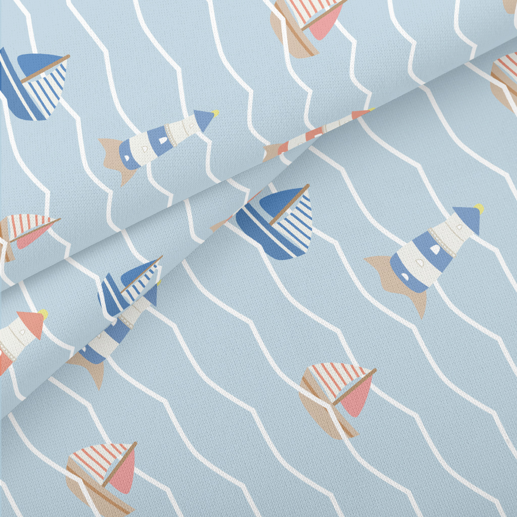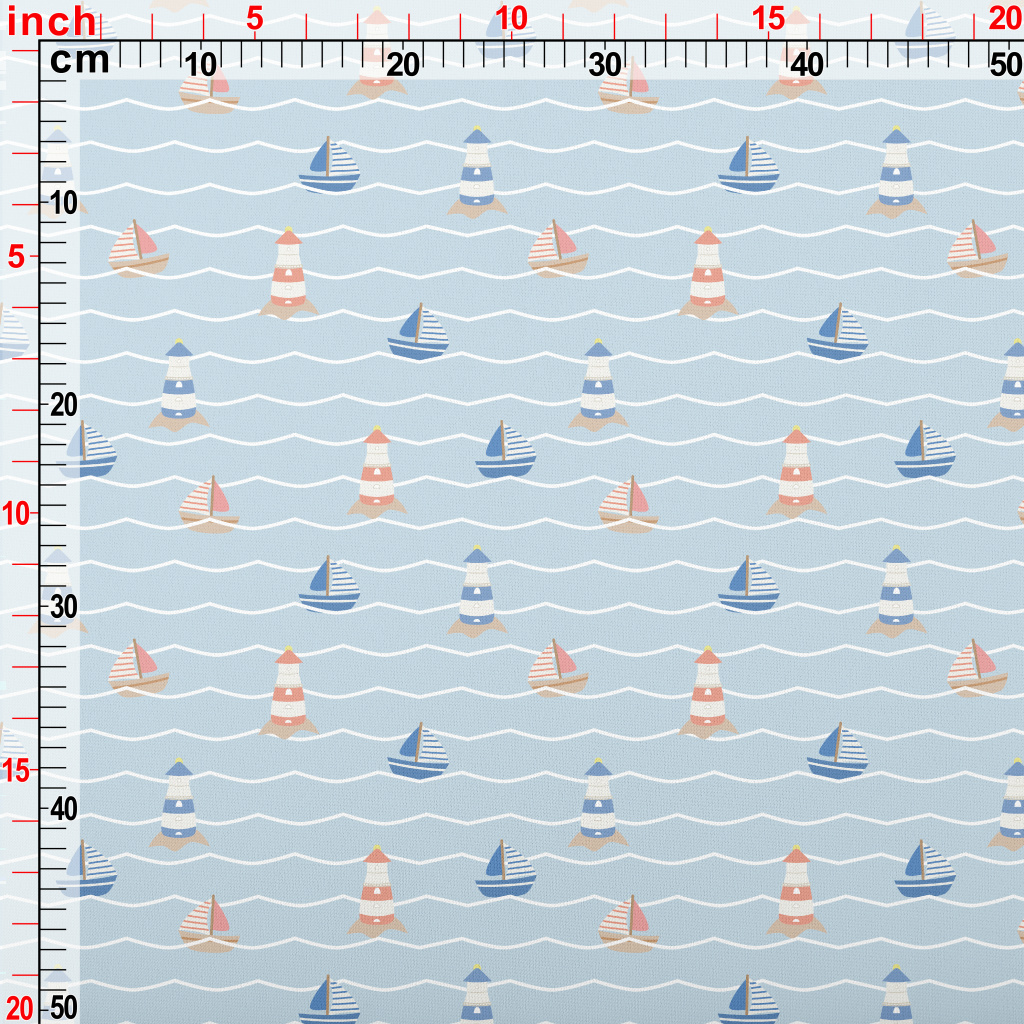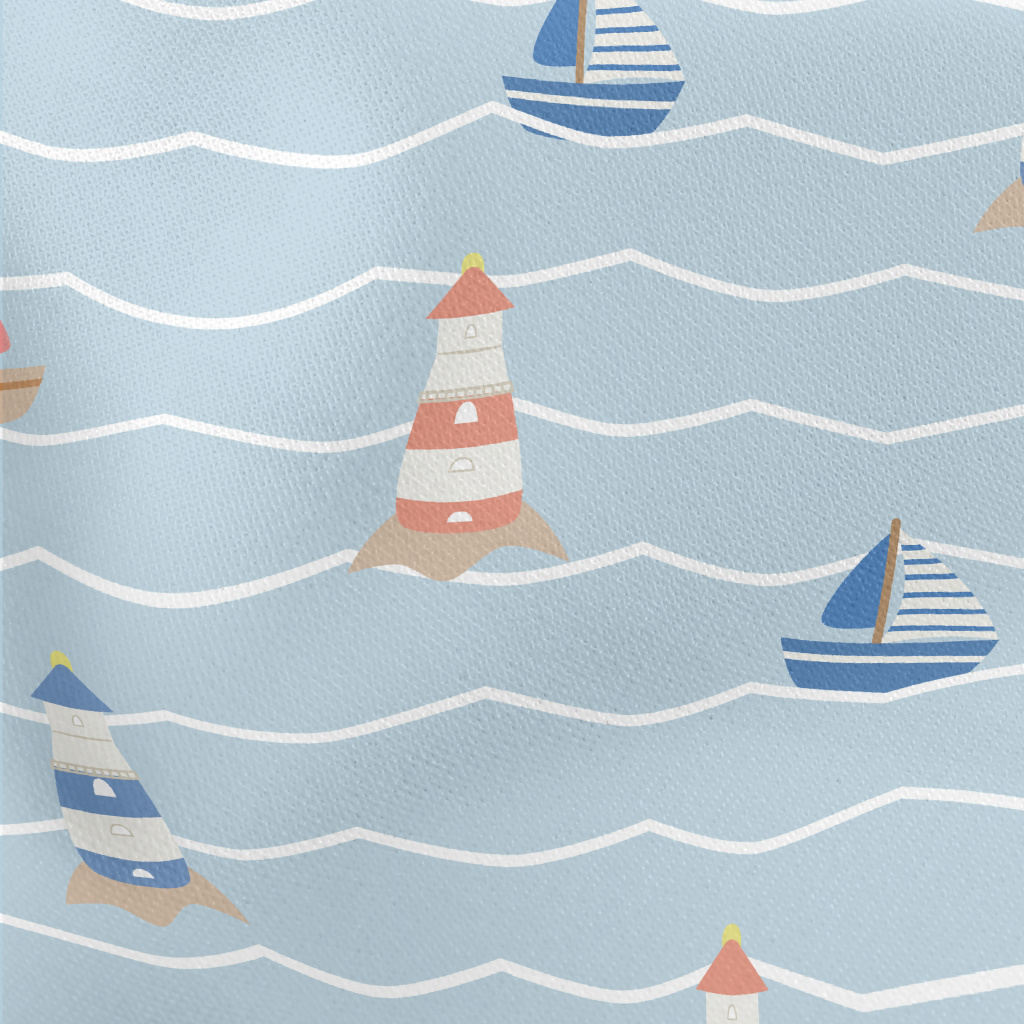 紅藍色帆船與燈塔薄棉布(幅寬150公分)