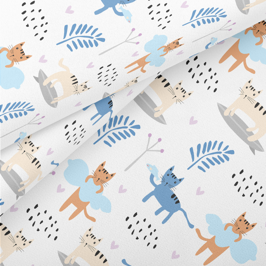 色塊卡通貓咪薄棉布(幅寬150公分)