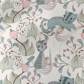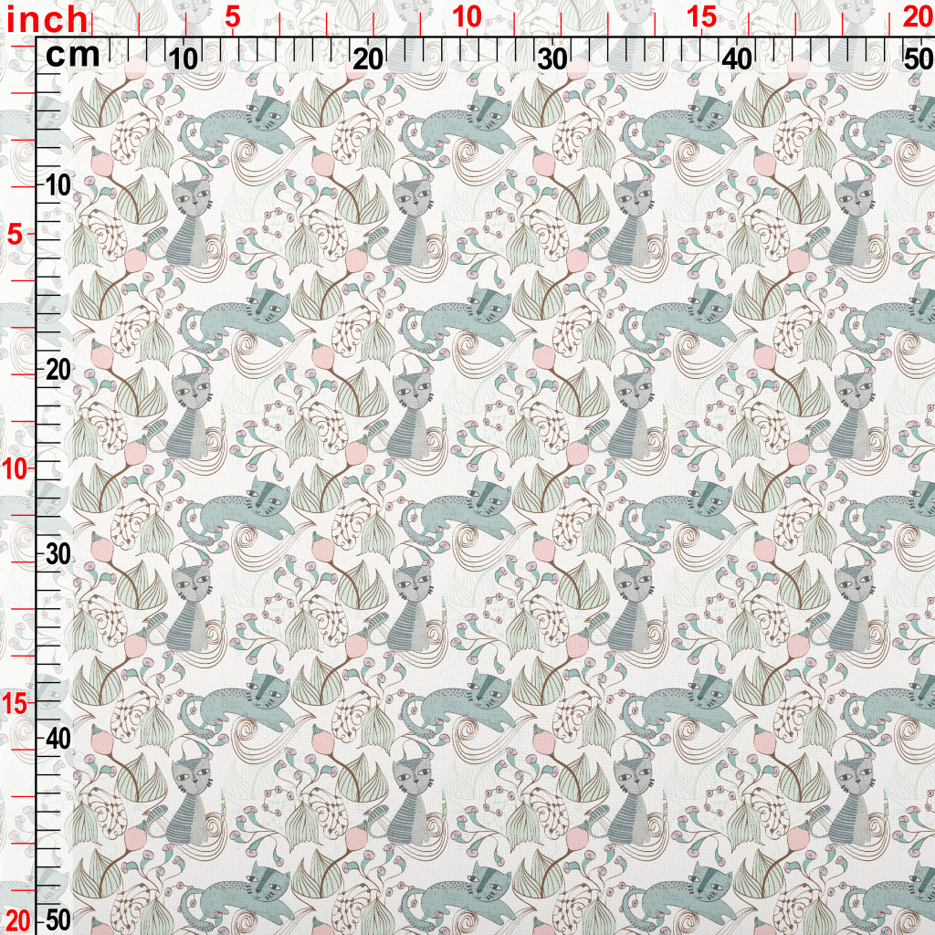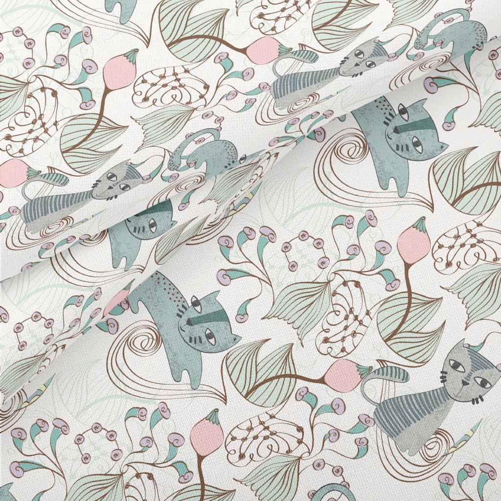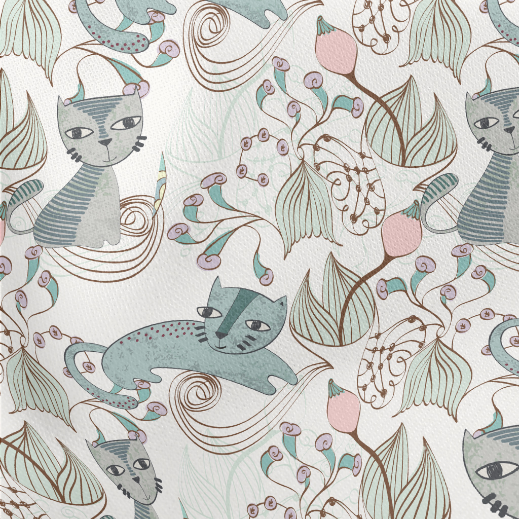手繪質感貓咪花朵薄棉布(幅寬150公分)