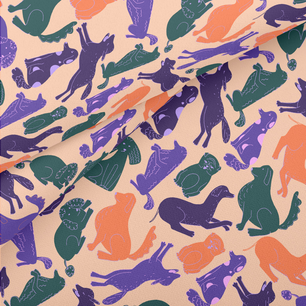 剪影線條彩色的狗狗薄棉布(幅寬150公分)