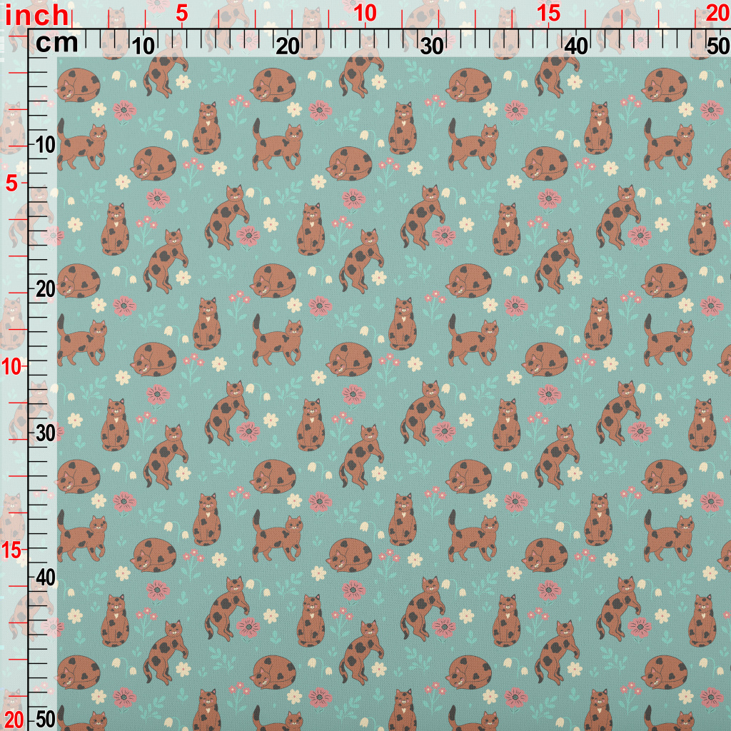 咖啡色花紋貓咪薄棉布(幅寬150公分)