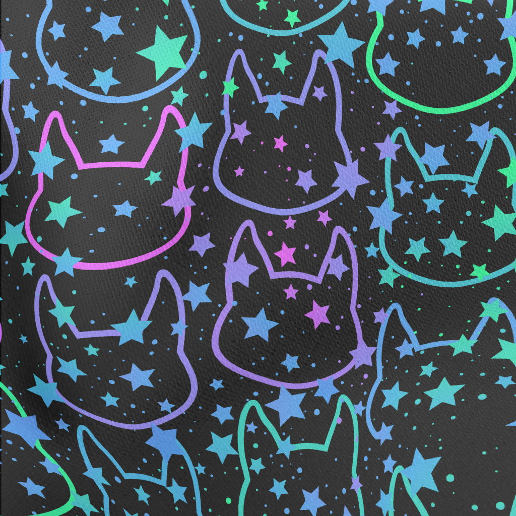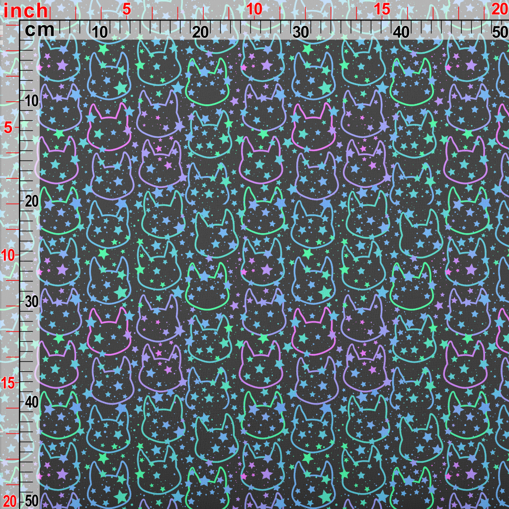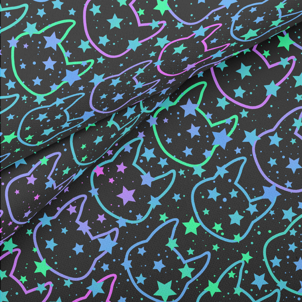 線條明亮貓咪與星星薄棉布(幅寬150公分)
