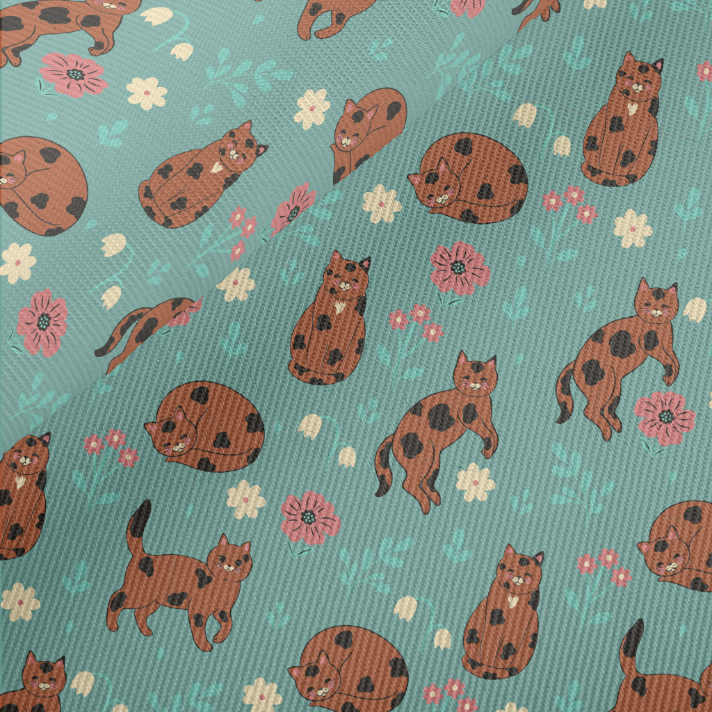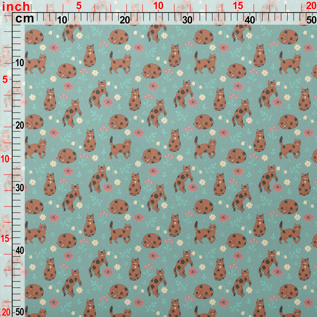 咖啡色花紋貓咪厚棉布(幅寬150公分)