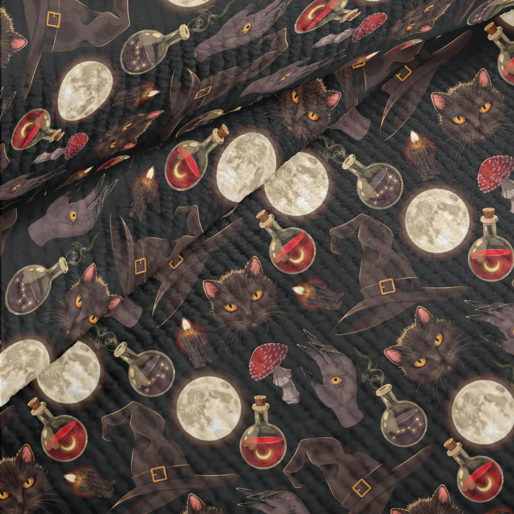 巫婆帽黑貓鬼手藥水毛巾布(幅寬160公分)