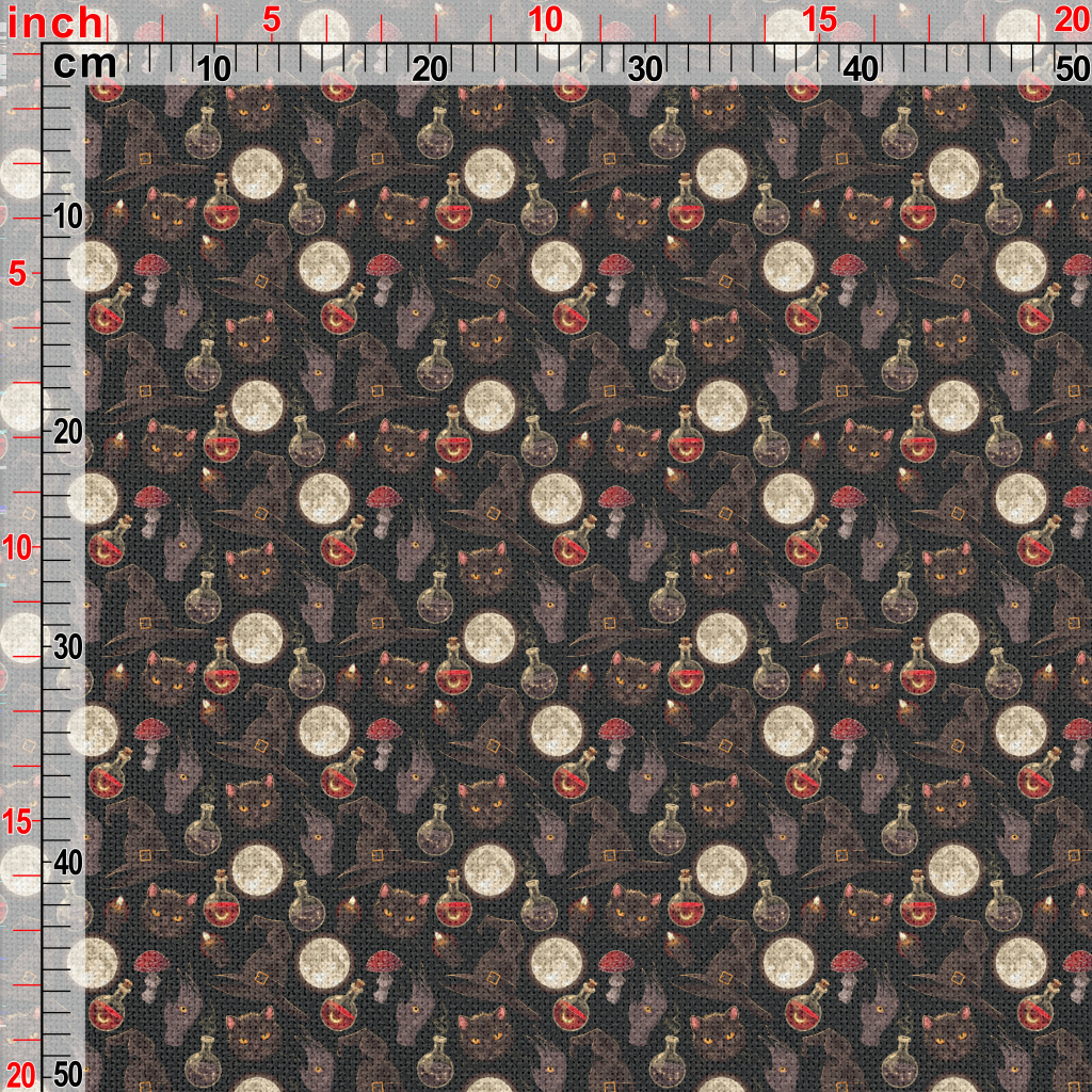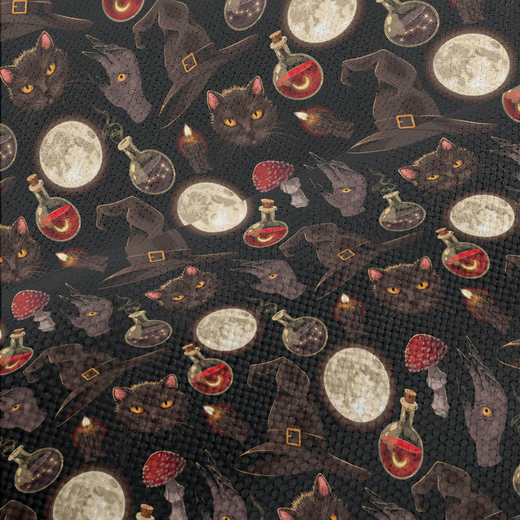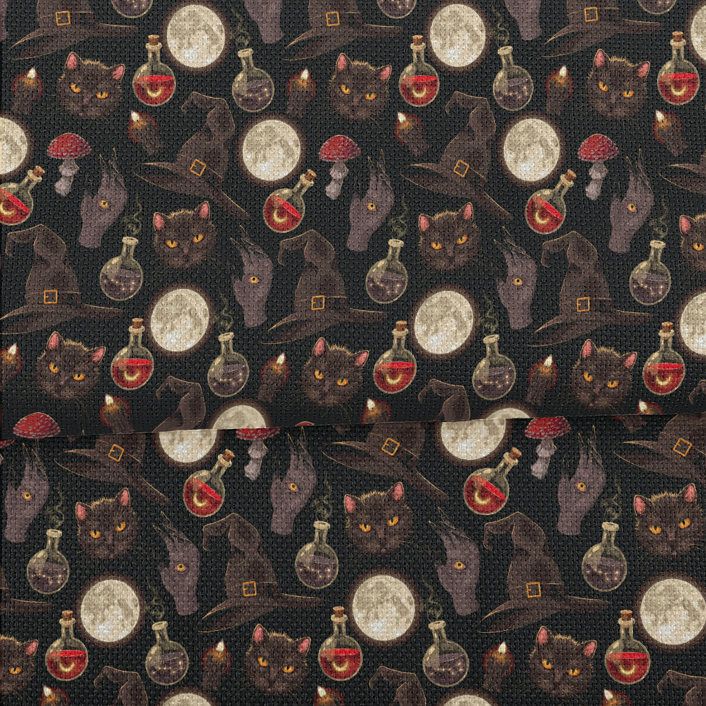 巫婆帽黑貓鬼手藥水麻布(幅寬150公分)