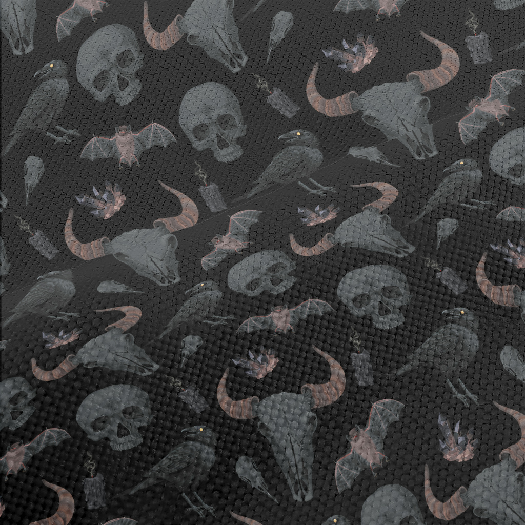 牛骨頭骨烏鴉蝙蝠麻布(幅寬150公分)