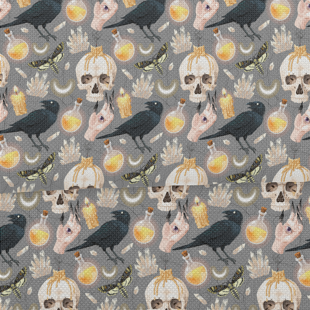 鬼手頭骨烏鴉蠟燭麻布(幅寬150公分)