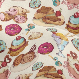 塗鴉各式甜點蛋糕雙斜布(幅寬150公分)