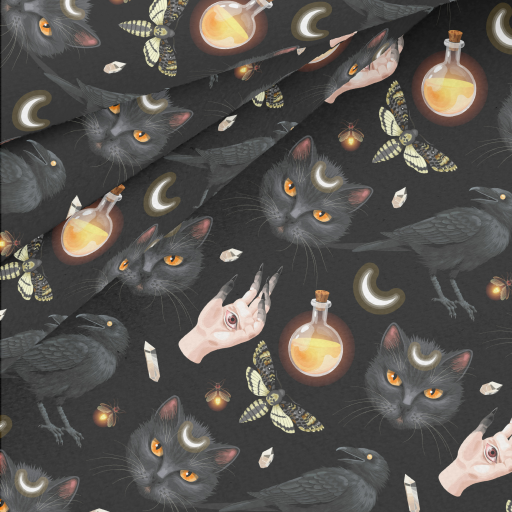 鬼手黑貓烏鴉昆蟲水晶絨(幅寬160公分)