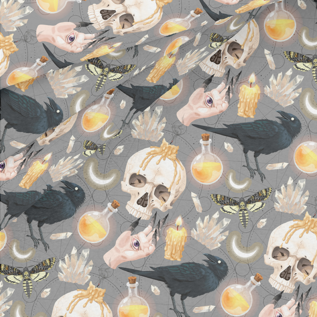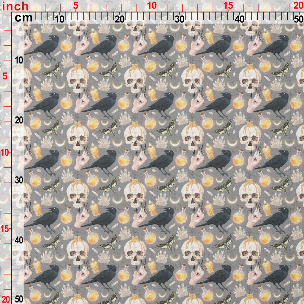 鬼手頭骨烏鴉蠟燭水晶絨(幅寬160公分)